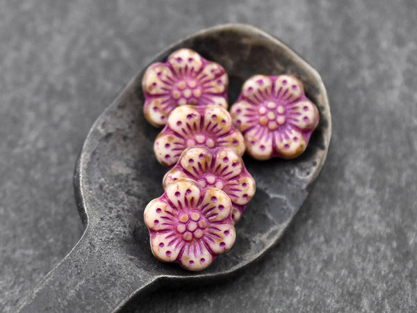 *9* 14mm Pink Washed Beige Picasso Hawaiian Flower Beads