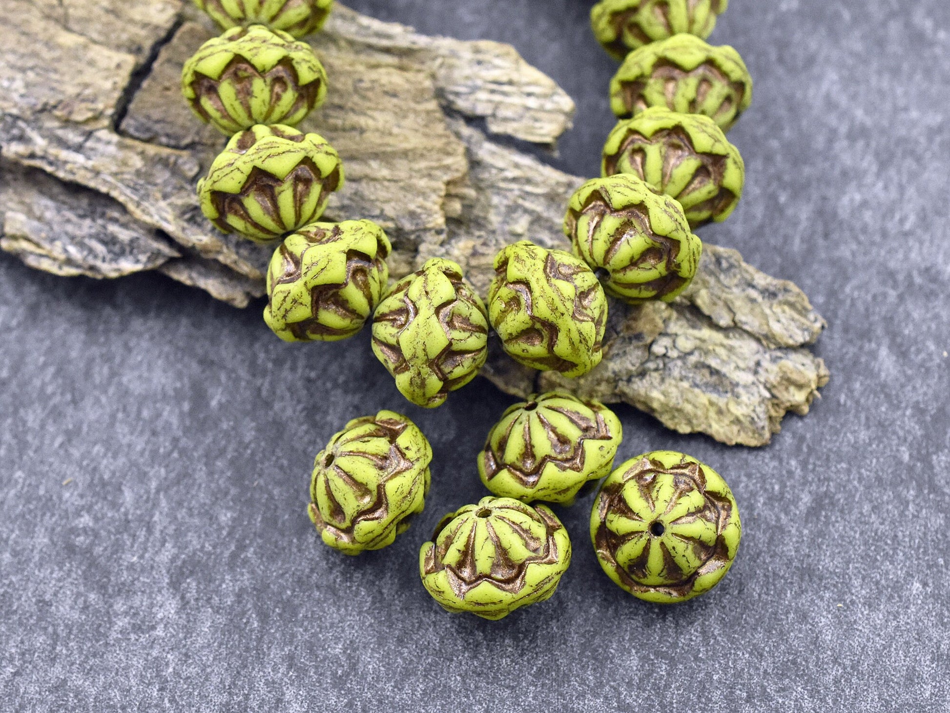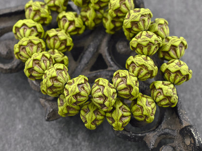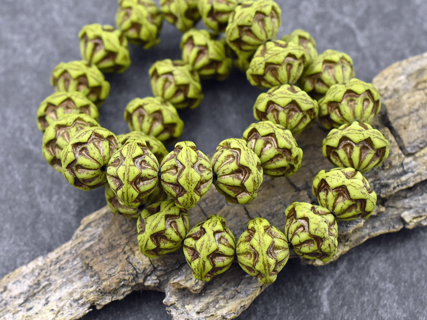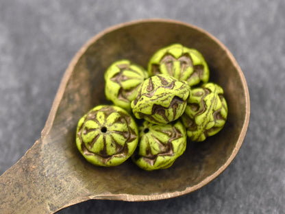 *8* 13x10mm Dark Bronze Washed Matte Chartreuse Saturn Beads