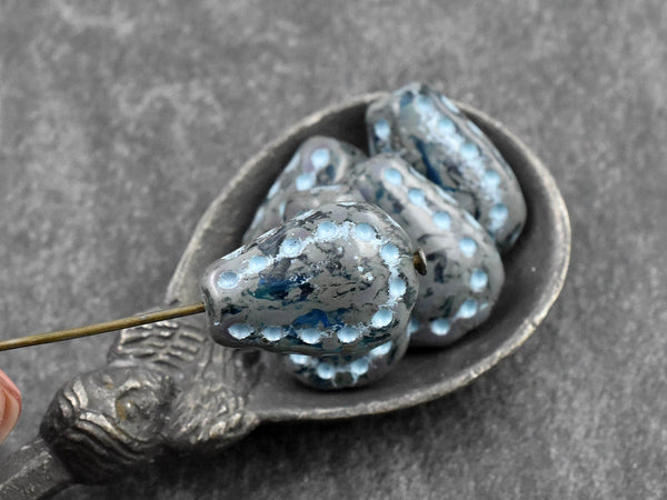 *8* 17x12mm Turquoise Washed Capri Blue Travertine Lacy Teardrop Beads