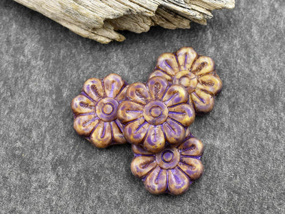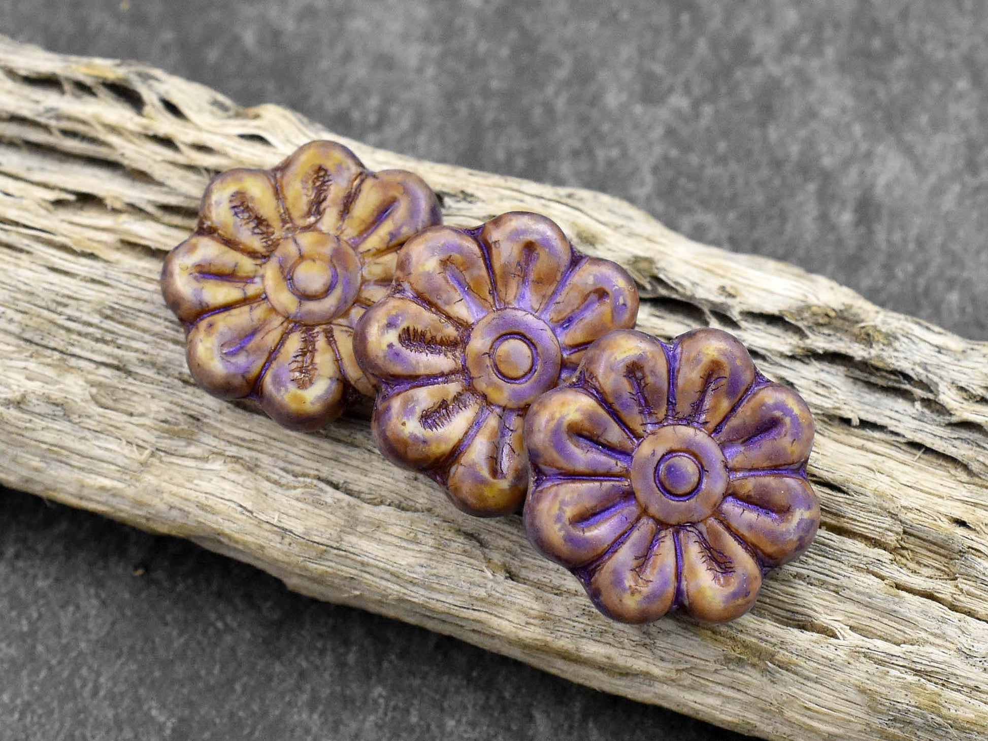 *6* 18mm Purple Washed Alabaster Picasso Daisy Flower Beads