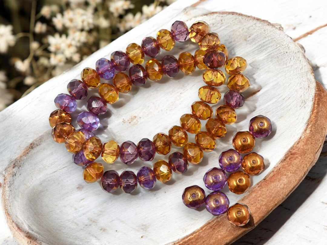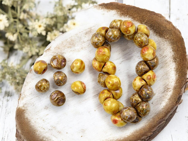 *30* 9x8mm Mixed Begie Picasso & Smokey Topaz Luster Mushroom Button Beads