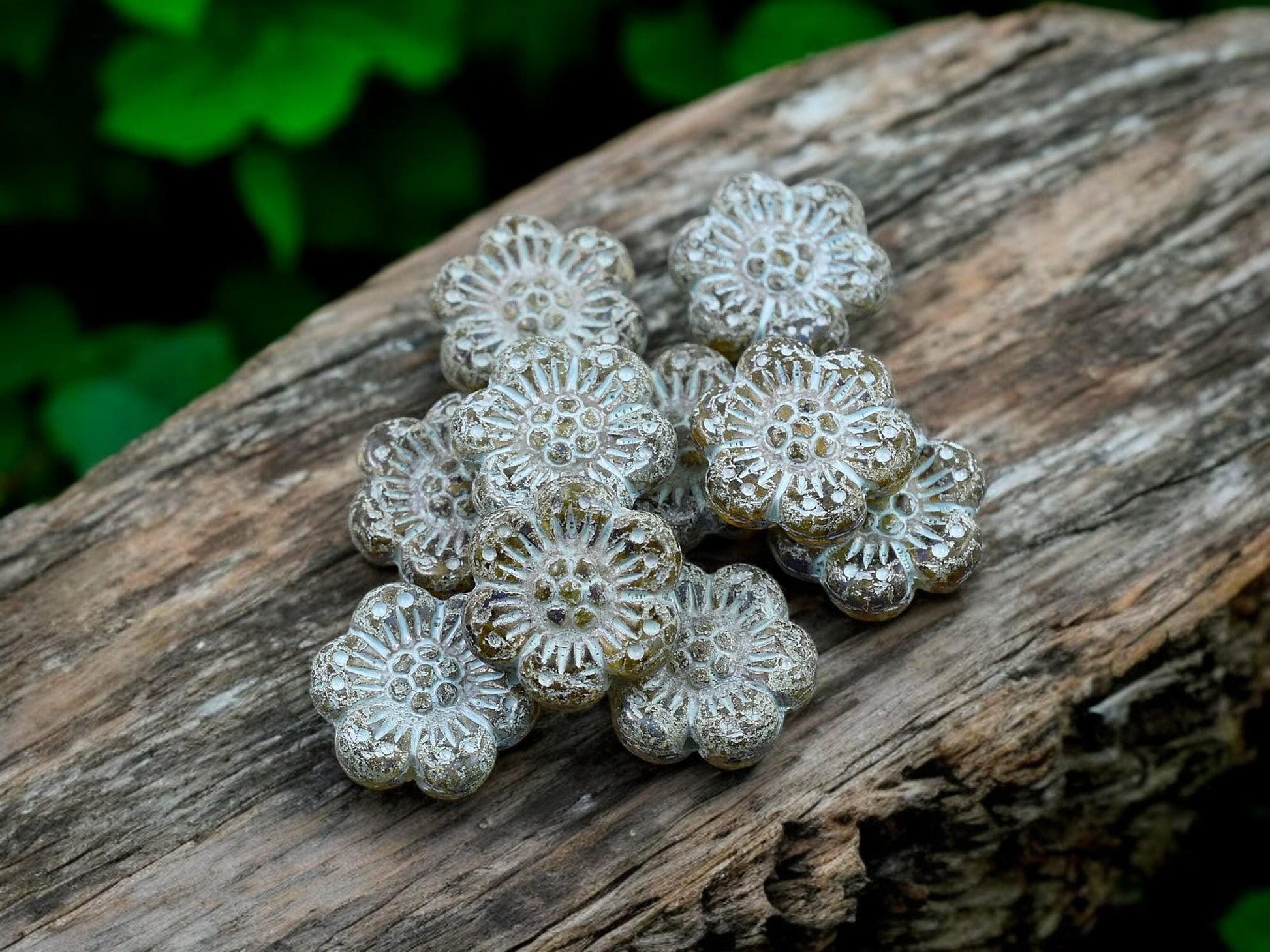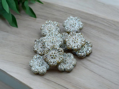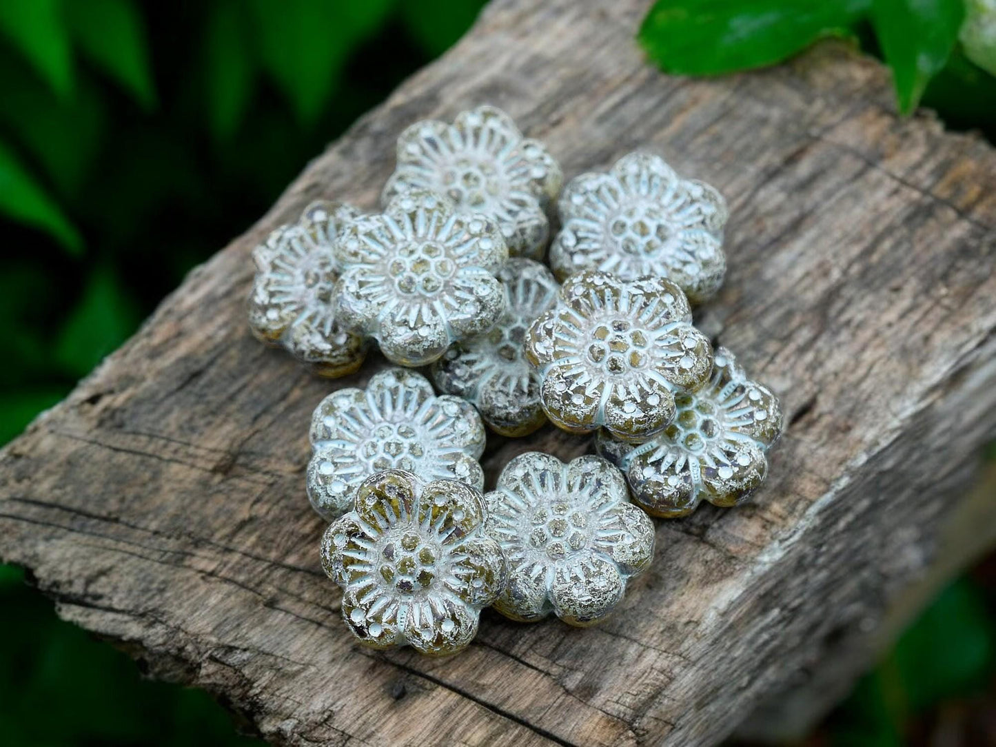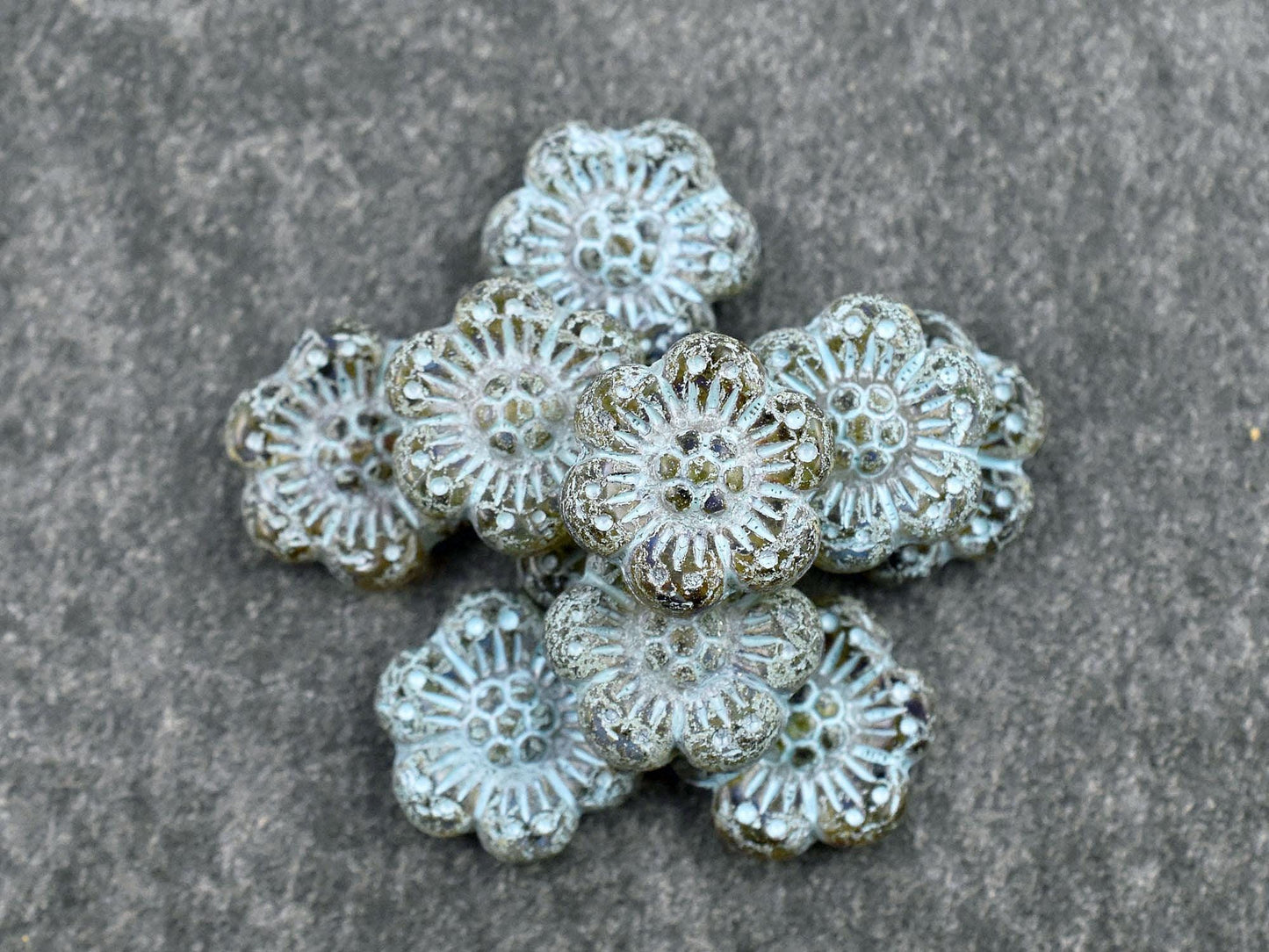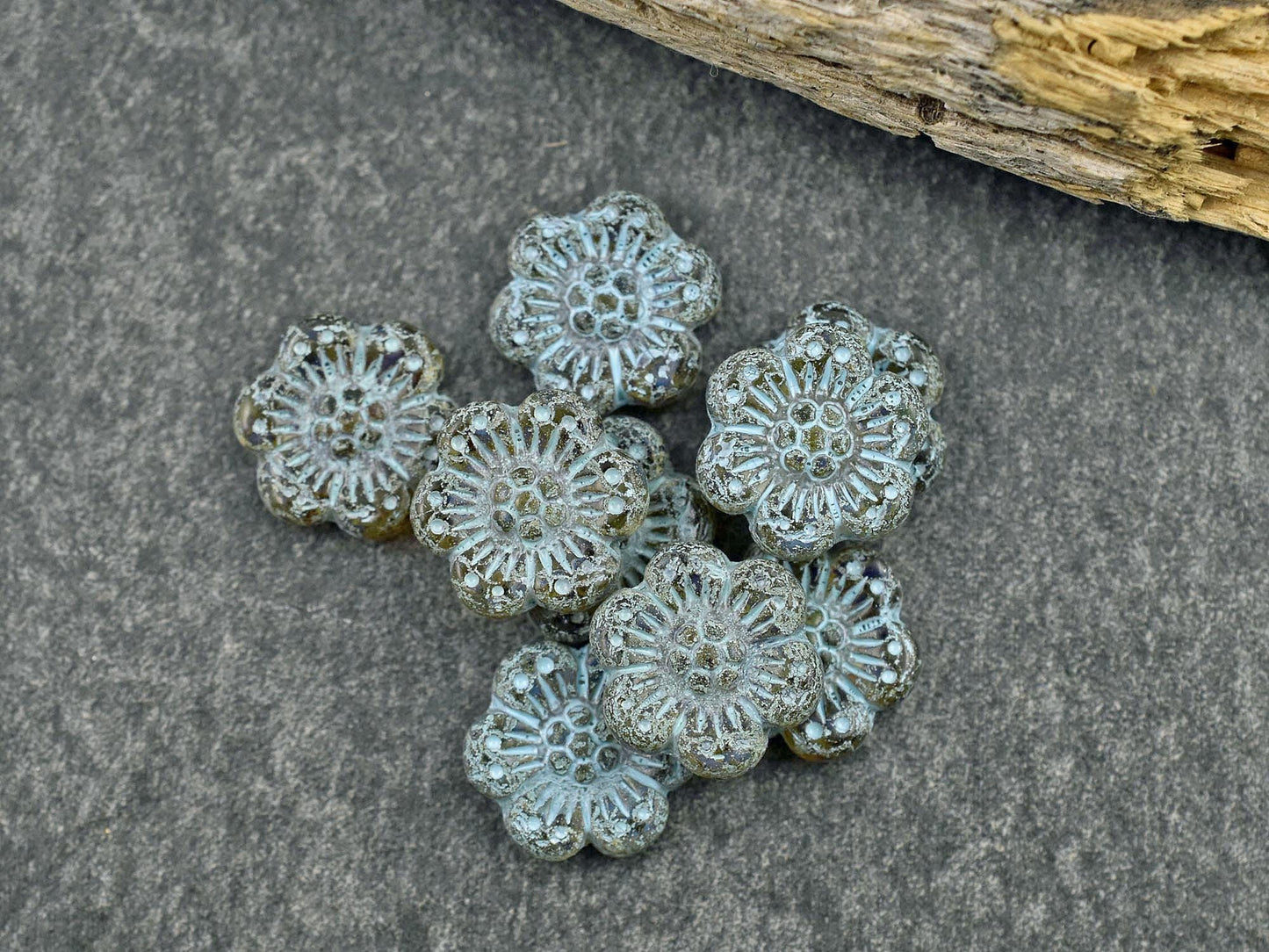 *12* 14mm Turquoise Washed Amber Picasso Wildflower Beads