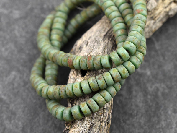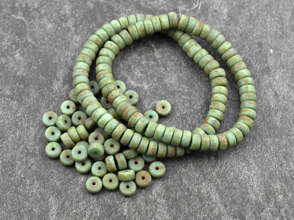 *50* 6x3mm Etched Turquoise Picasso Heishi Rondelle Beads