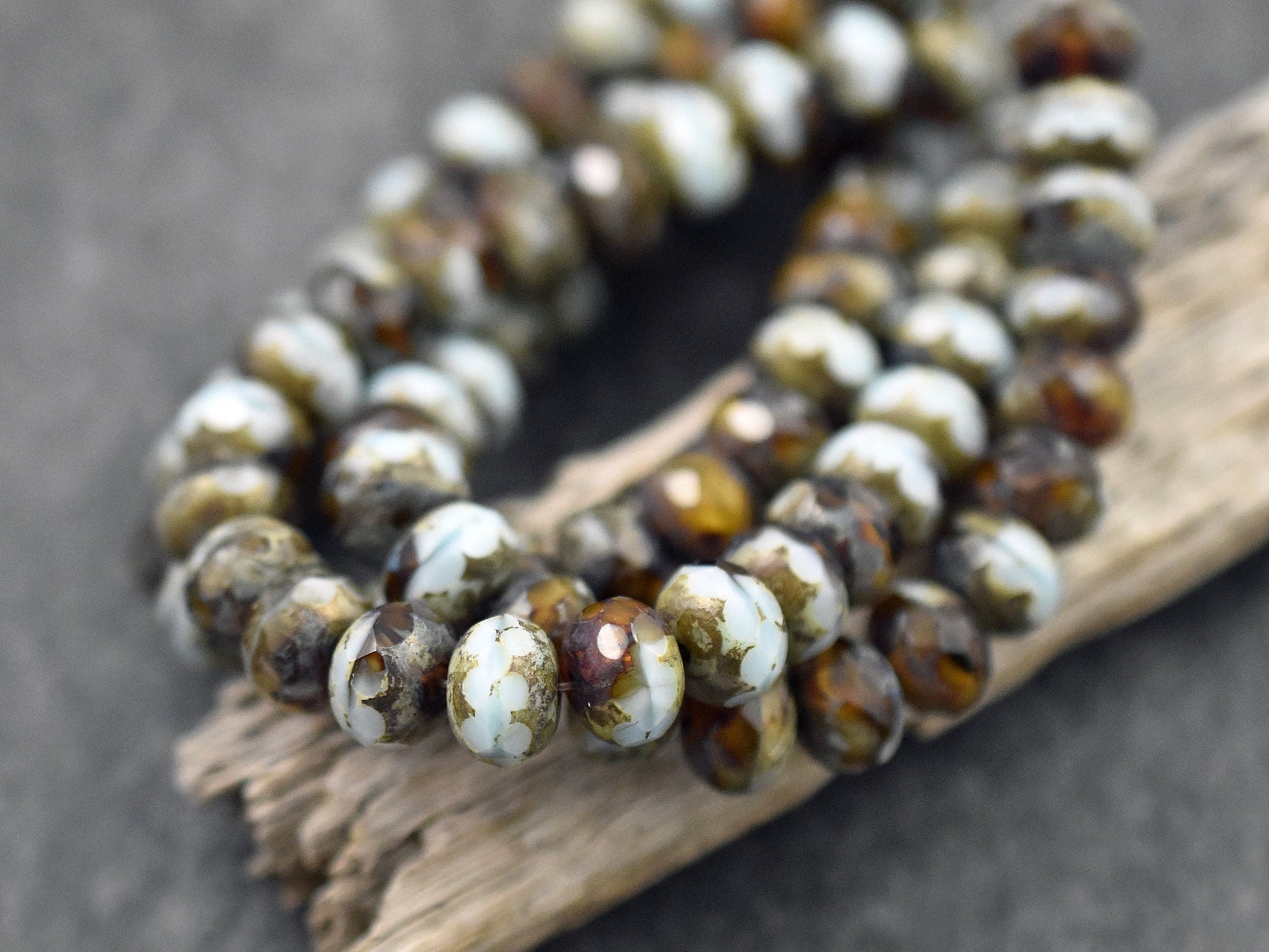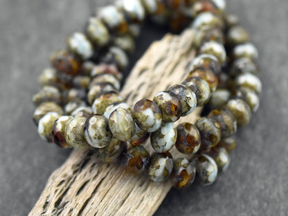 *25* 6x9mm Blended Topaz Blue Turquoise Picasso Fire Polished Rondelle Beads