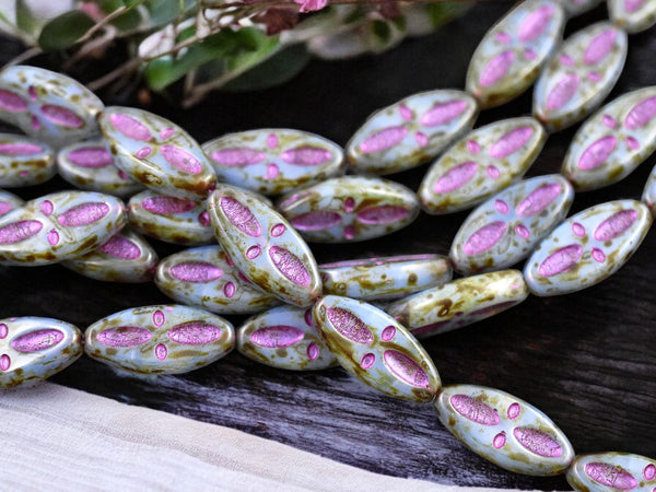 *8* 20x9mm Metallic Pink Washed Blue Opaline Picasso Marquise Oval Beads