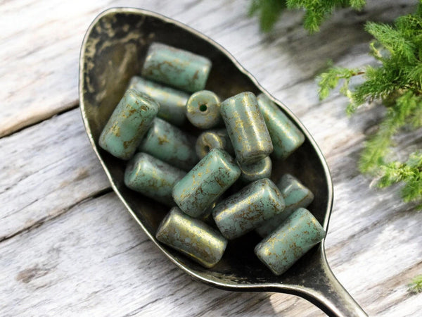 *16* 9x5mm Bronze Washed Turquoise Tube Beads