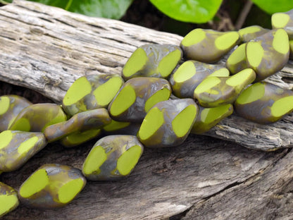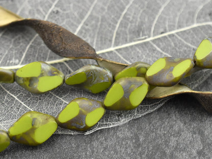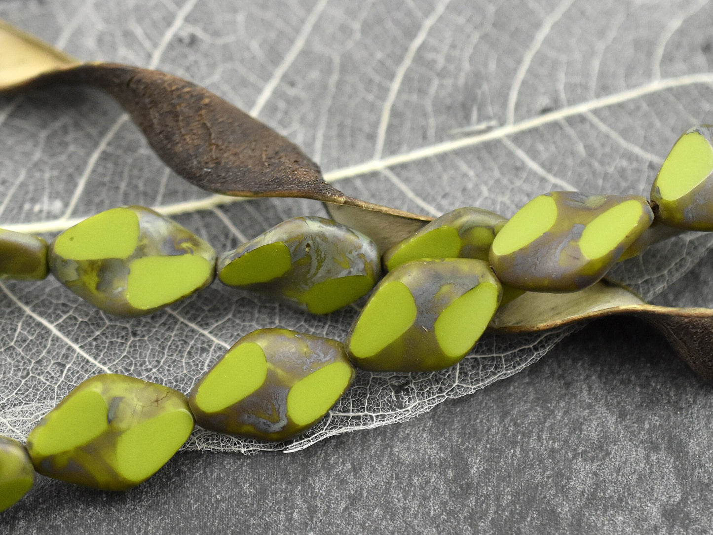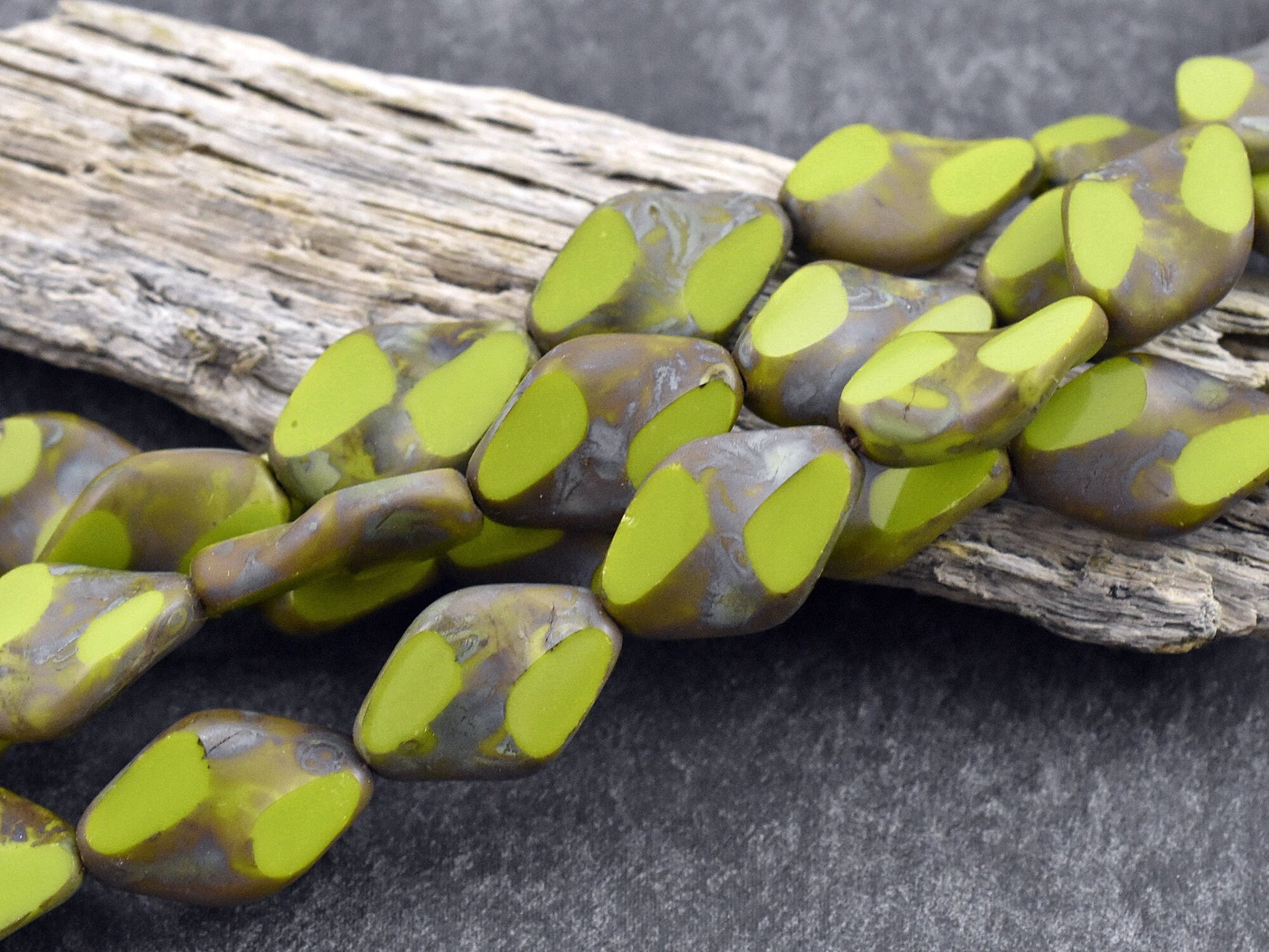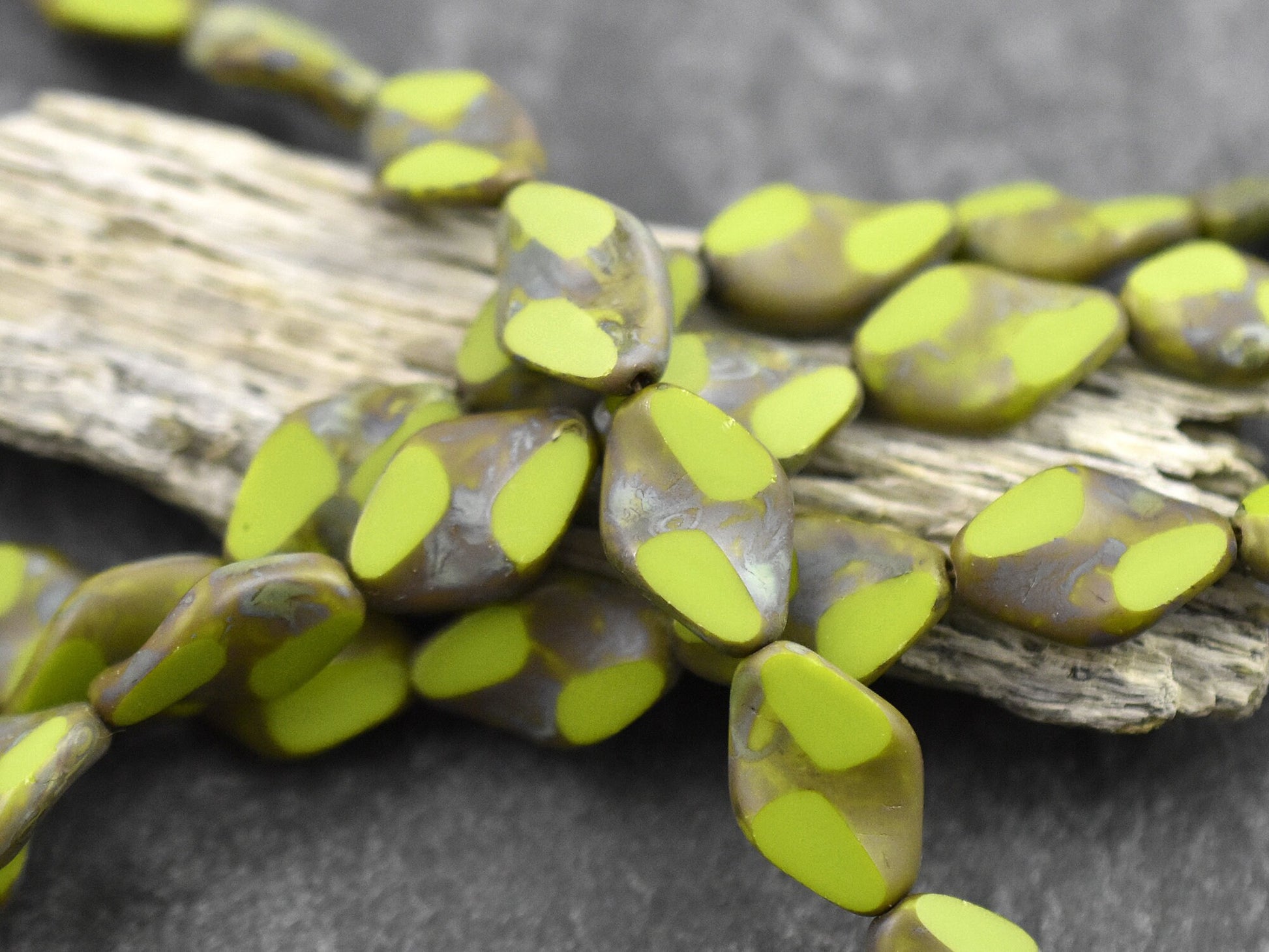*11* 12x18mm Opaque Chartreuse Picasso 2 Cut Diamond Beads