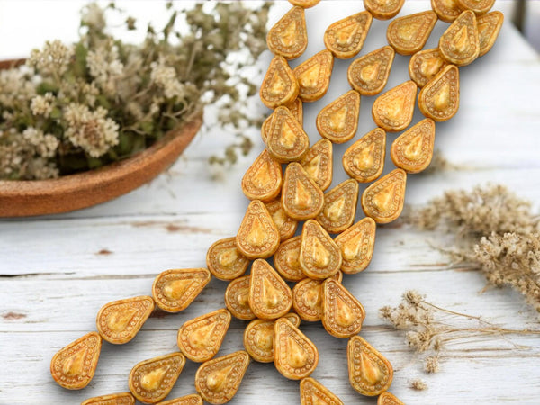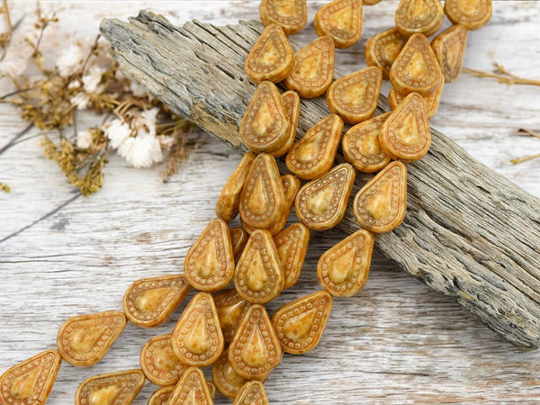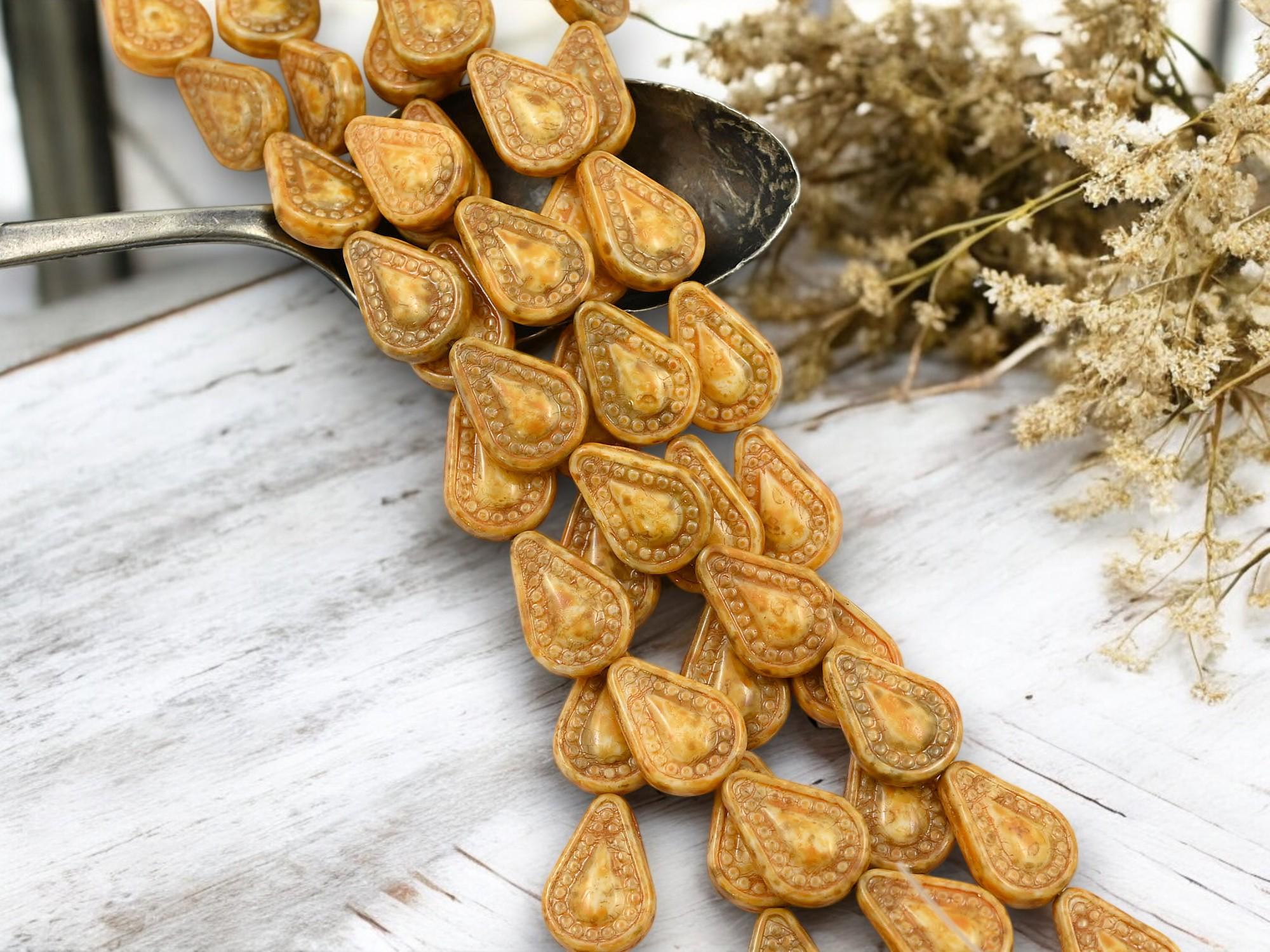 *10* 14x10mm Aged Goldenrod Travertine Filigree Tear Drop Beads