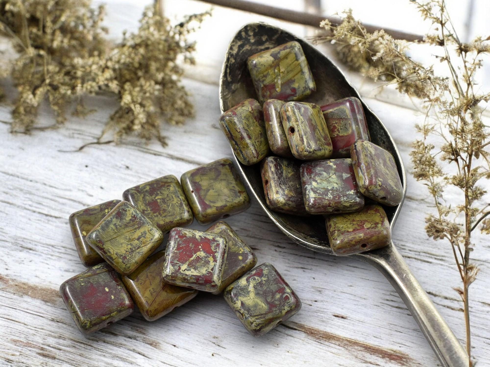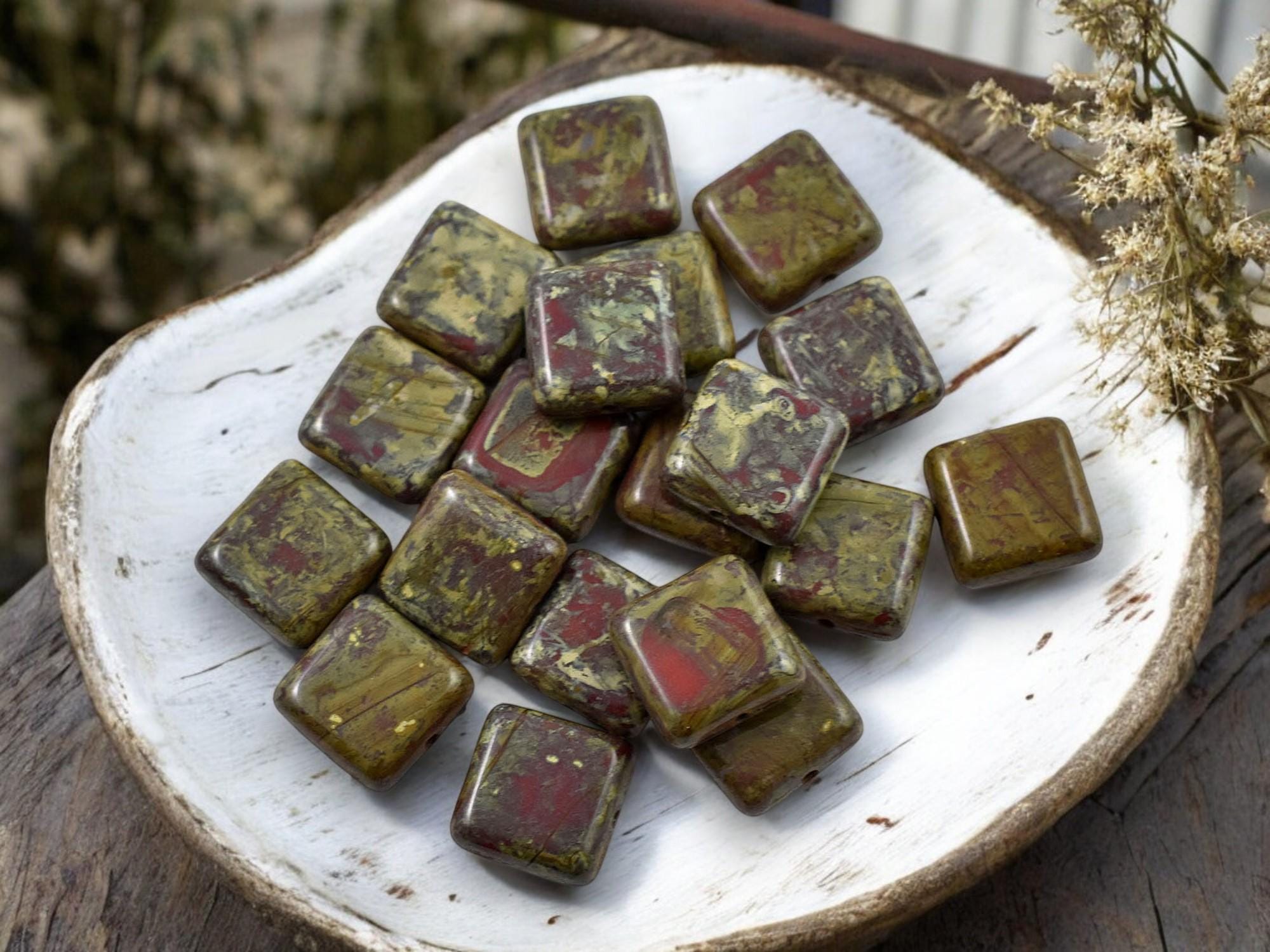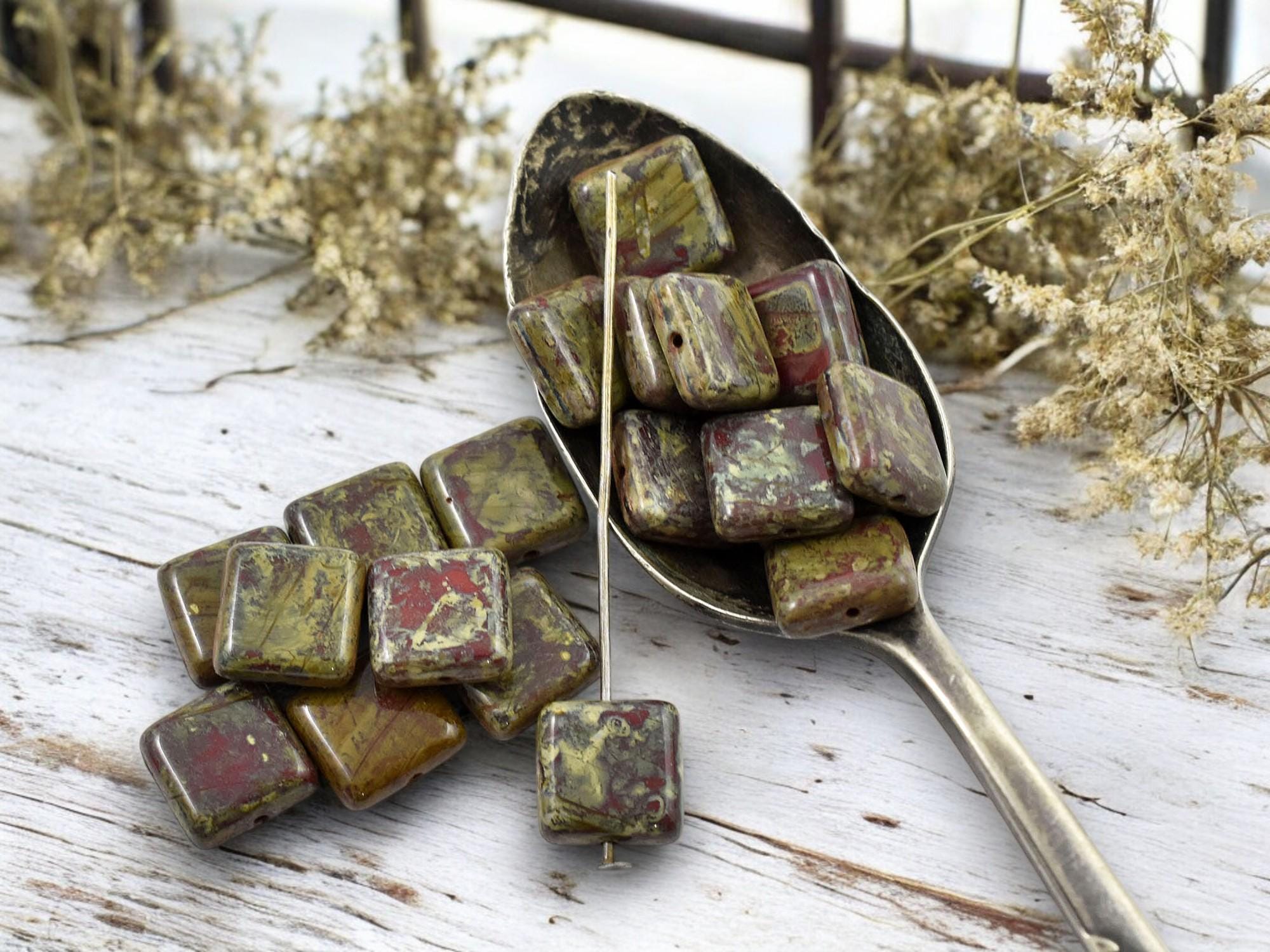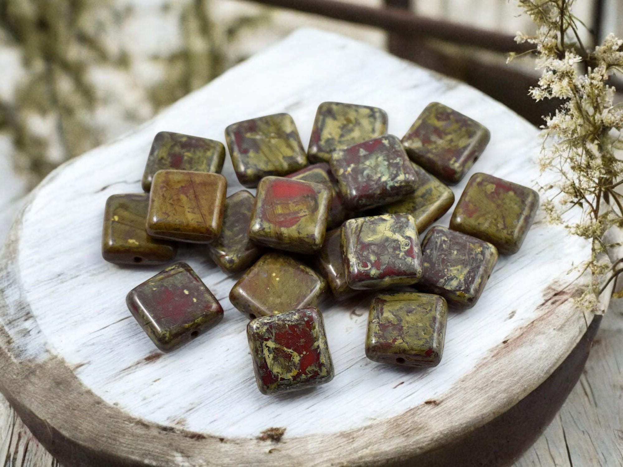 *15* 10mm Opaque Dark Red Travertine Flat Square Beads