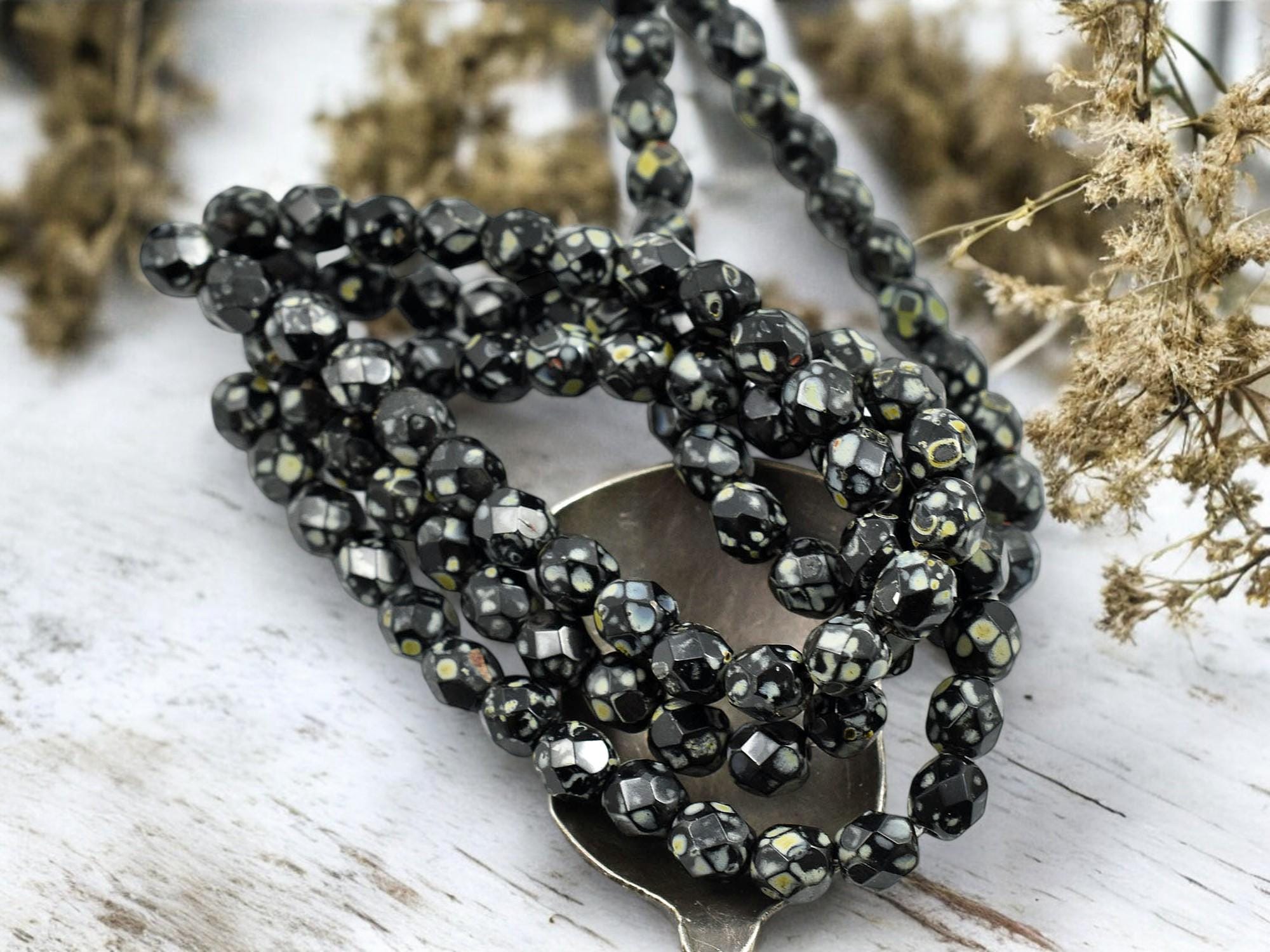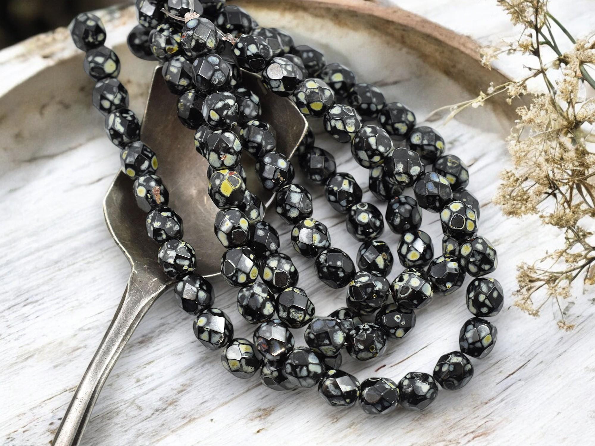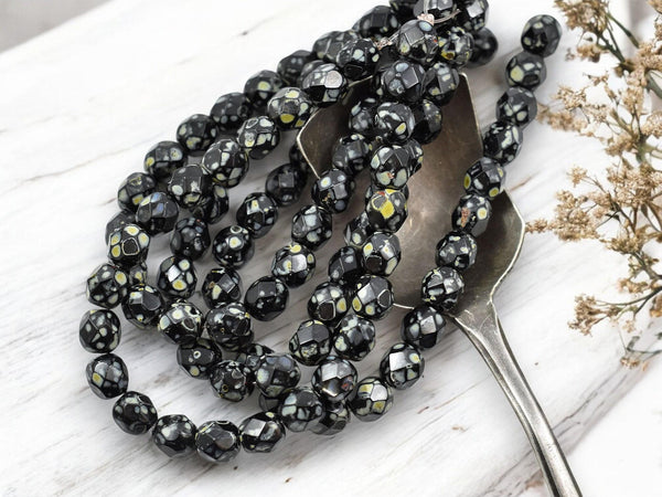 *25* 6mm Jet Picasso Fire Polished Round Beads