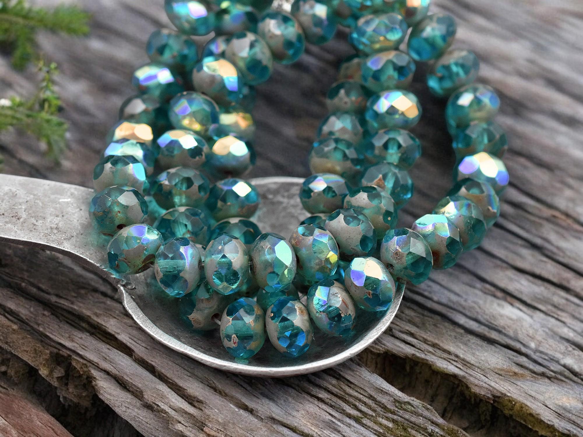 *25* 6x8mm Pacific Blue AB Picasso Fire Polished Rondelle Beads