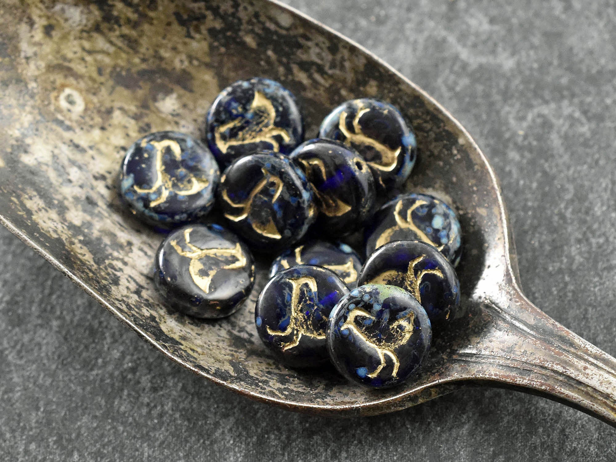 *15* 12mm Gold Washed Cobalt Picasso Bird Coin Beads