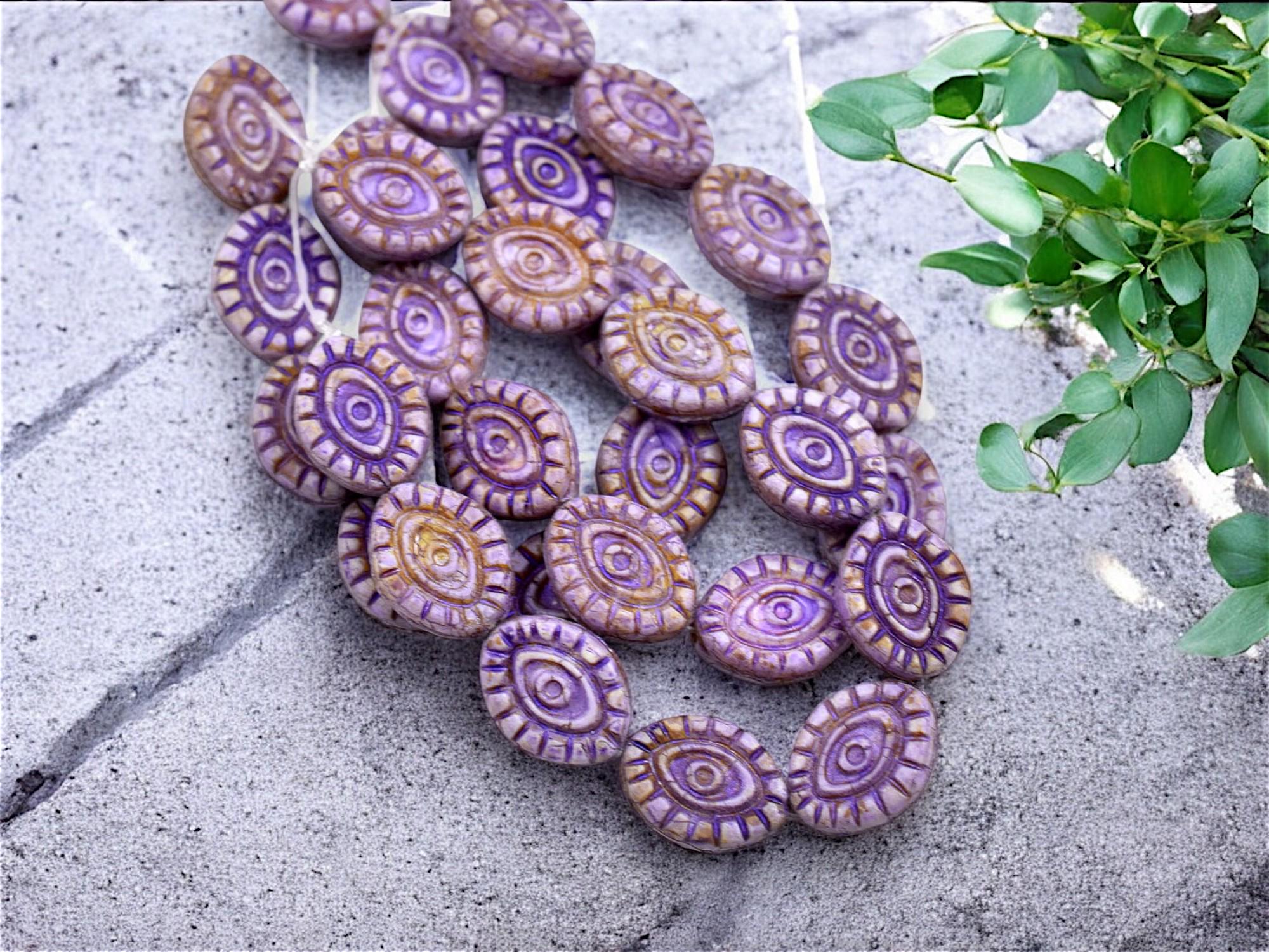 *10* 14x11mm Purple Washed Opaque Matte Purple Picasso Mystic Eye Beads