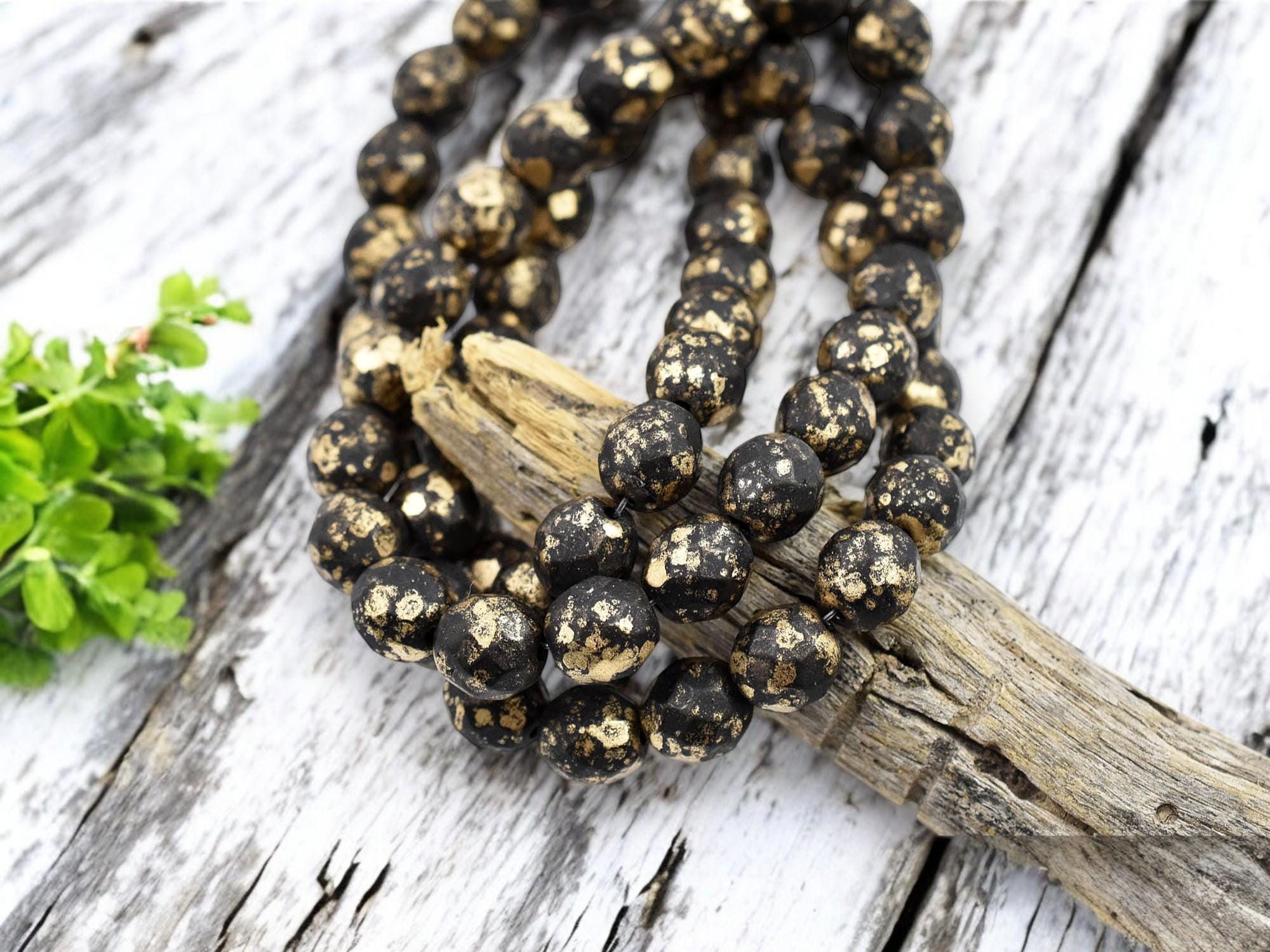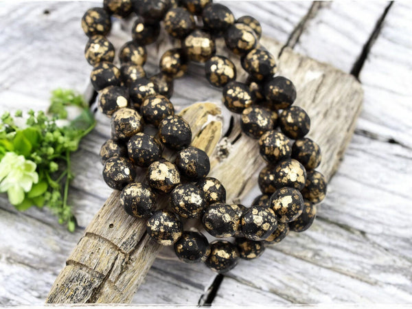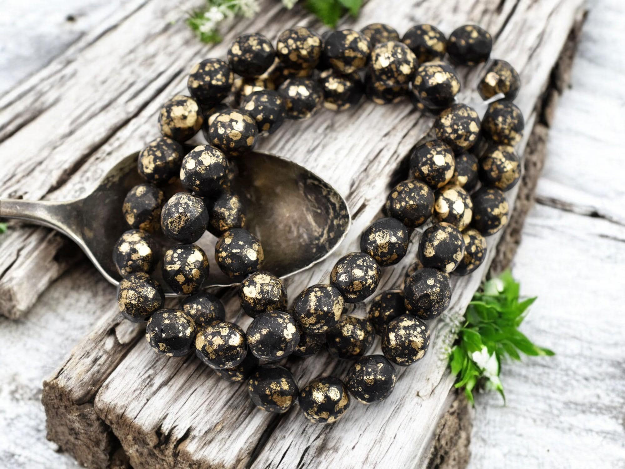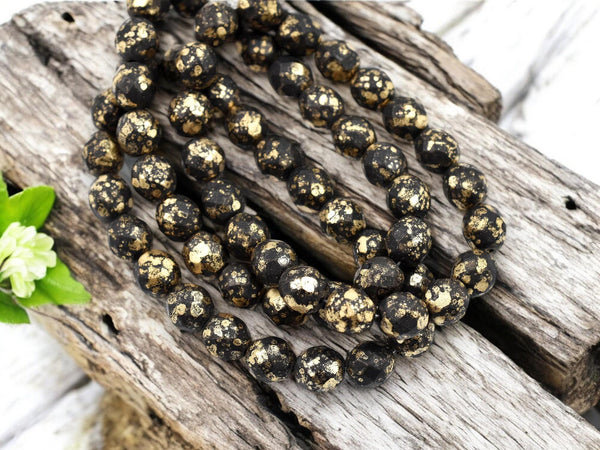 *20* 8mm Gold Splattered Matte Black Fire Polished Round Beads