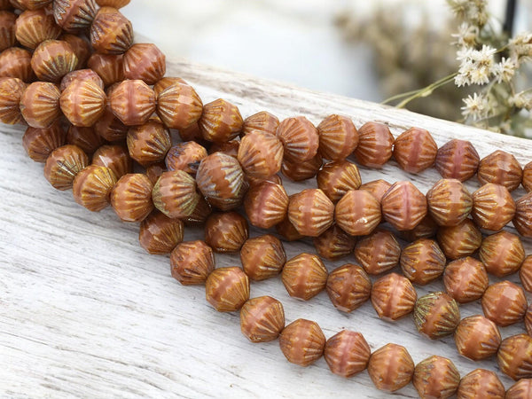 *25* 9mm Coral Pink Picasso Fluted Bicone Beads