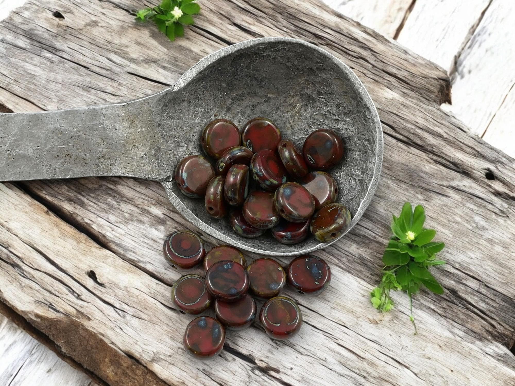 *25* 8mm Opaque Dark Red Travertine Flat Dime Beads