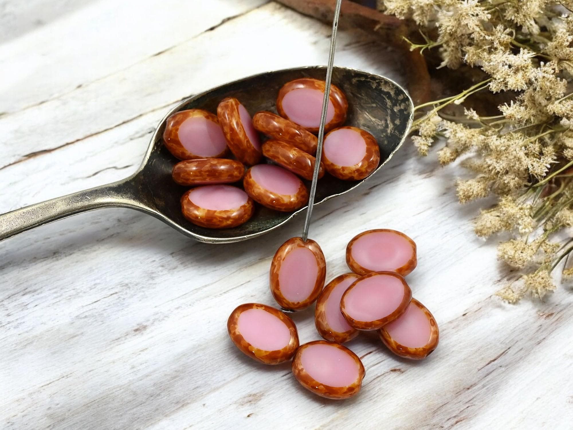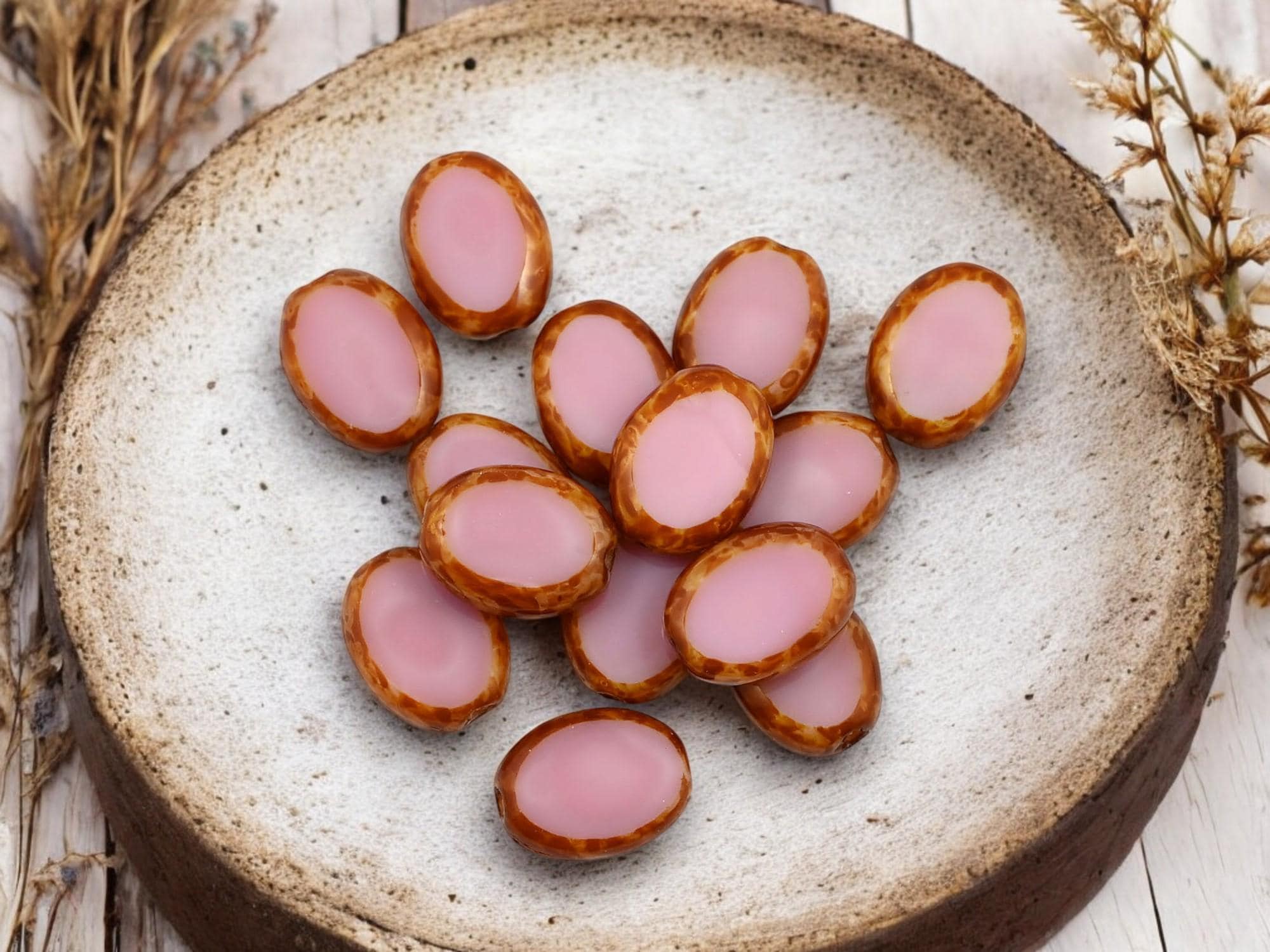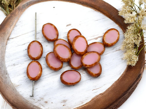 *24* 12x9mm Pink Silk Picasso Table Cut Oval Beads