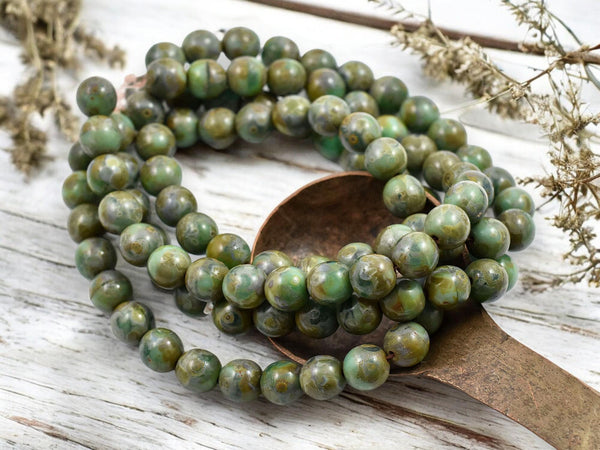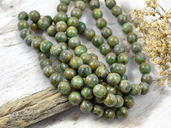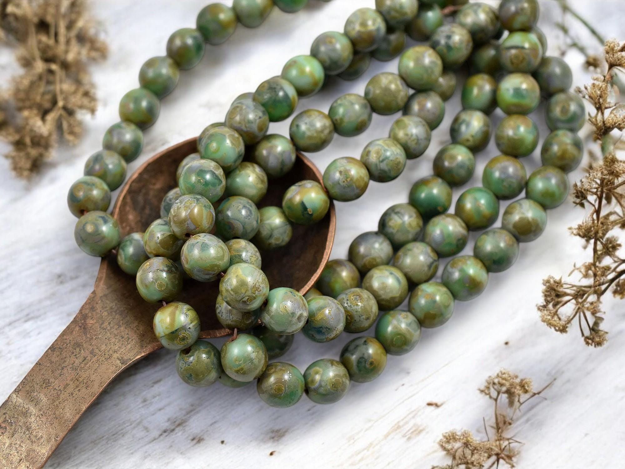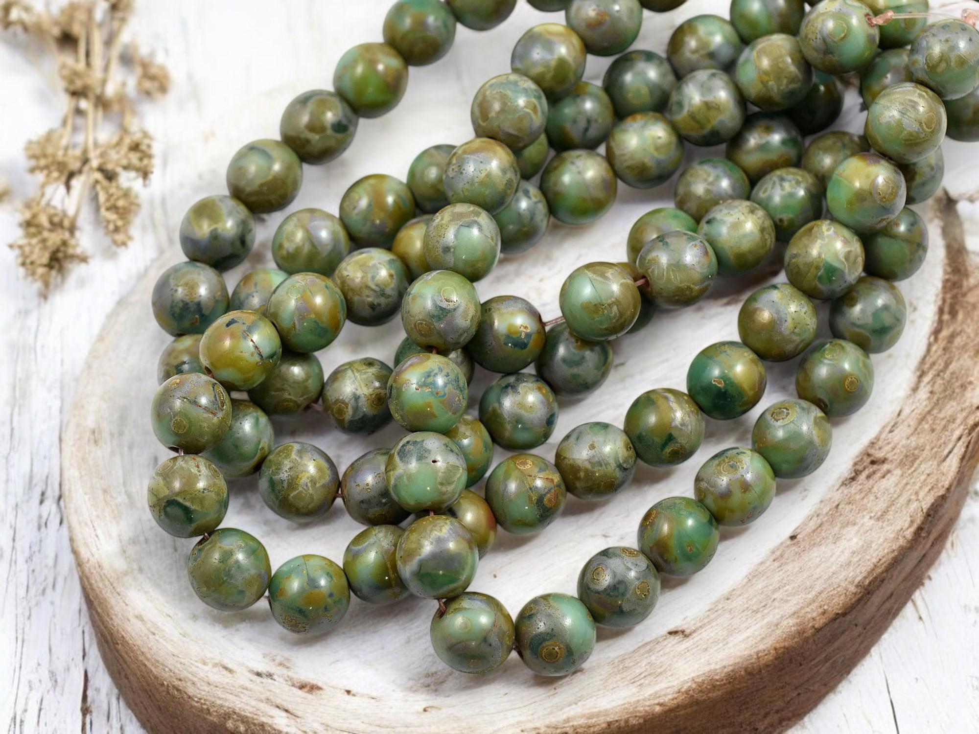 *25* 8mm Rustic Green Picasso Round Druk Beads