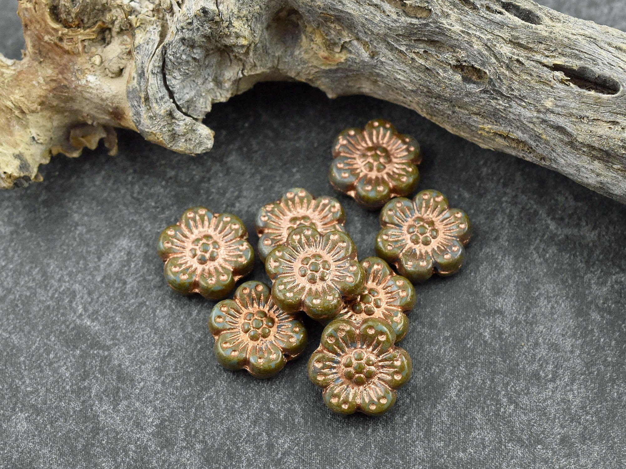 *12* 14mm Copper Washed Opaque Turquoise Picasso Wildflower Beads
