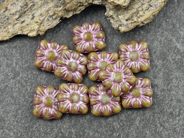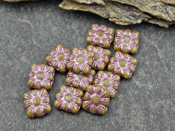 *13* 11mm Metallic Pink Washed Pale Blue Travertine Square Zinnia Flower Beads