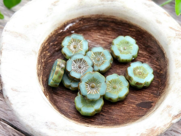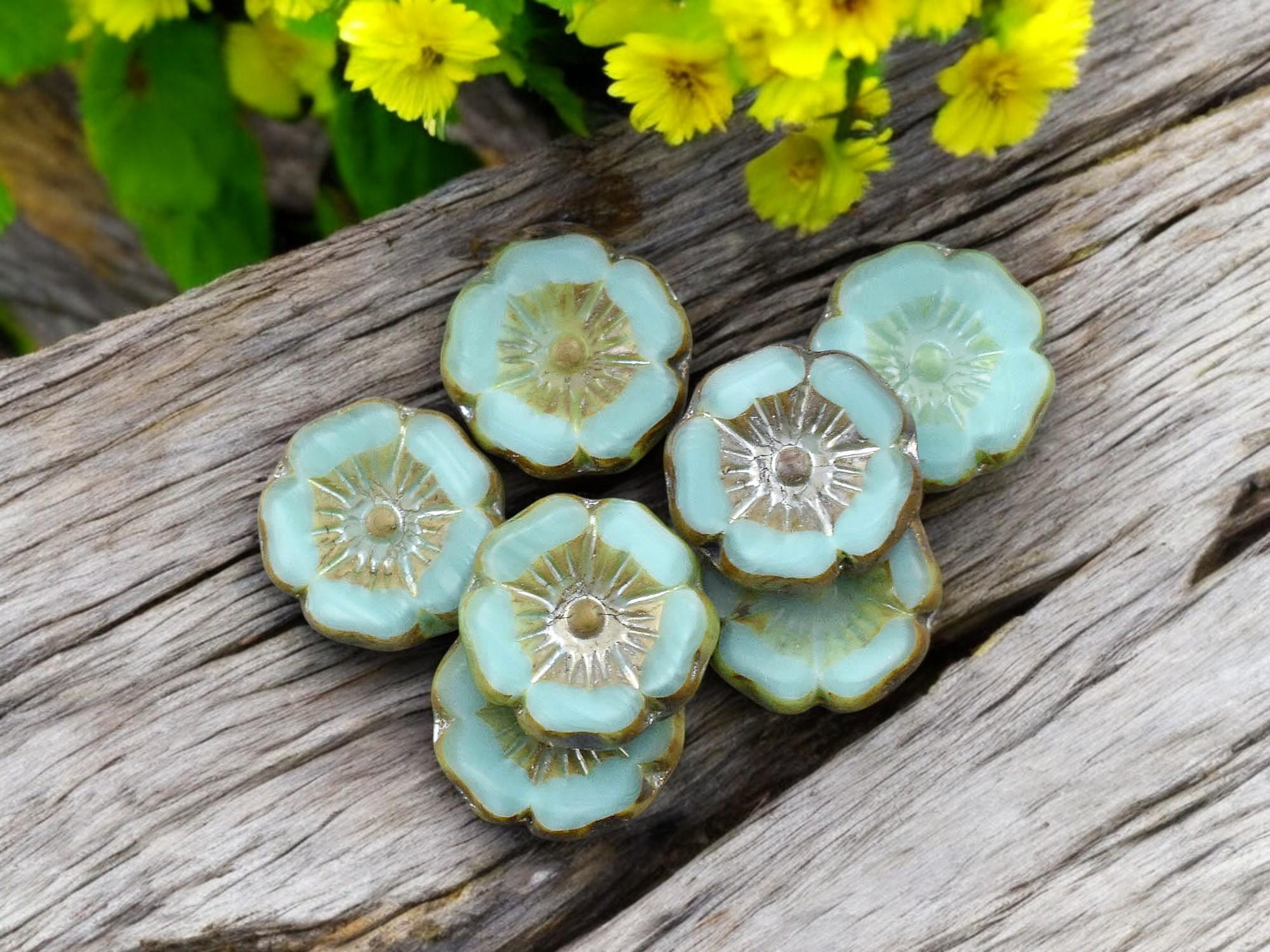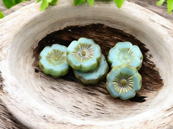 *12* 12mm Turquoise Silk Luster Picasso Hawaiian Flower Beads