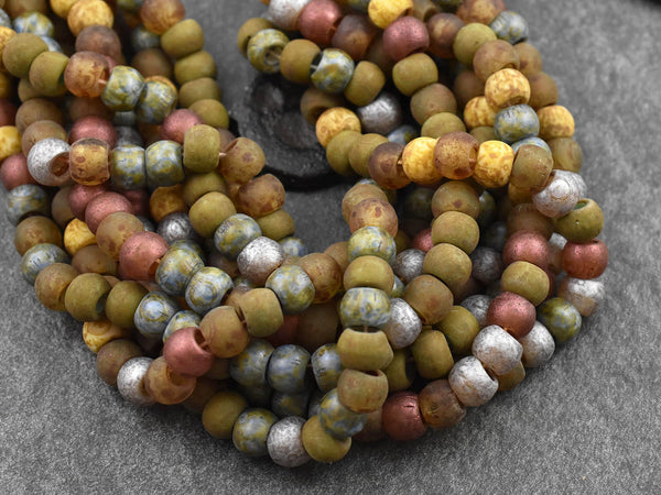 32/0 Aged Rustic Mardi Gras Picasso Mix Seed Beads (18" Strand)