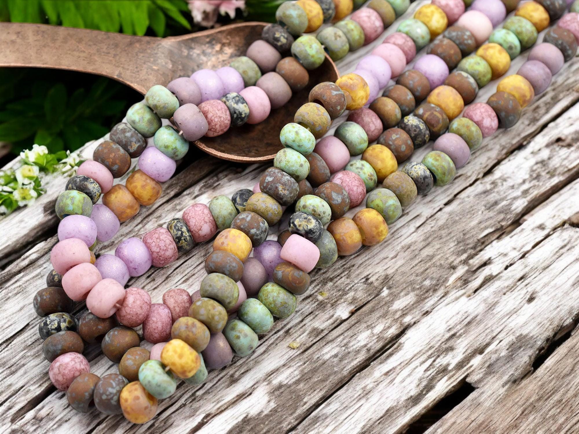 33/0 Aged Matte Rosaline Striped Picasso Seed Bead Mix (9" Strand)