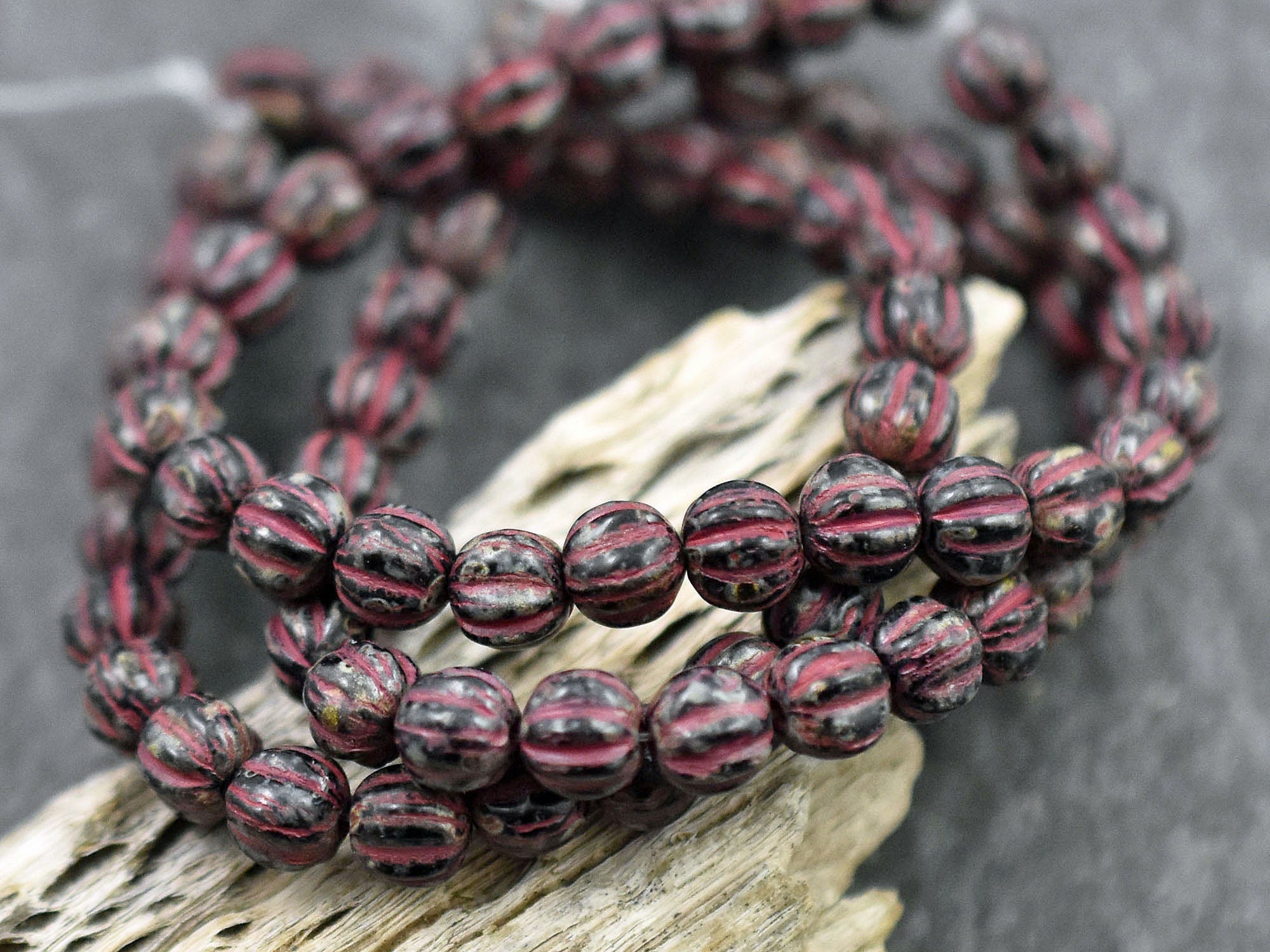 *25* 5mm Red Washed Jet Picasso Round Melon Beads