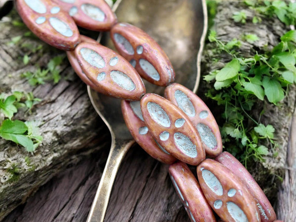♥ Type/Shape: Czech pressed glass marquise oval beads w/cross design