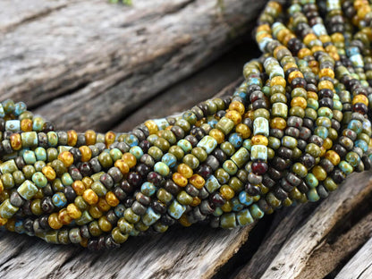 6/0 Aged Azul Heart Picasso Czech Glass Seed Bead Bugle Mix (21" Strand)