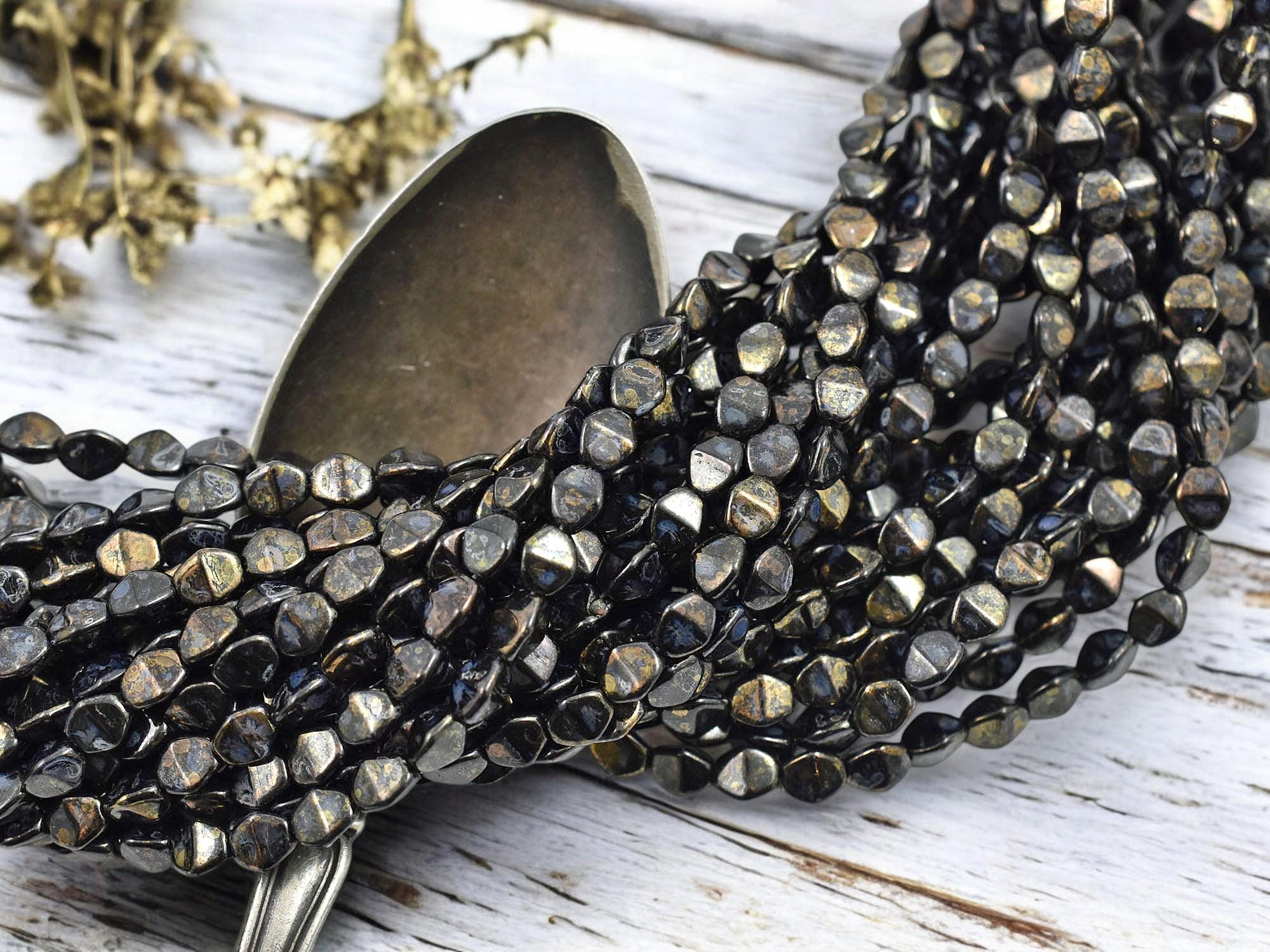 *50* 5x3mm Jet Bronze Picasso Pinch Beads