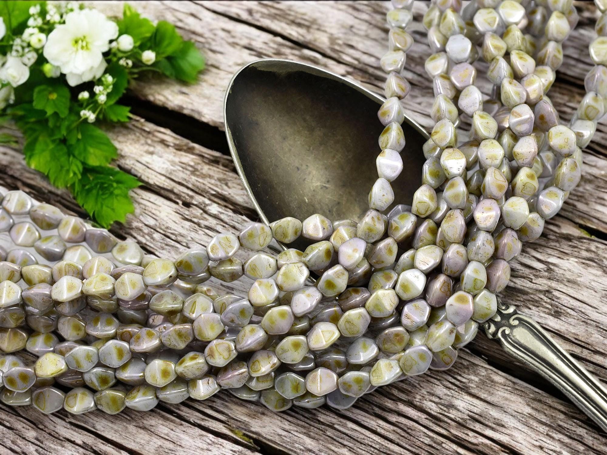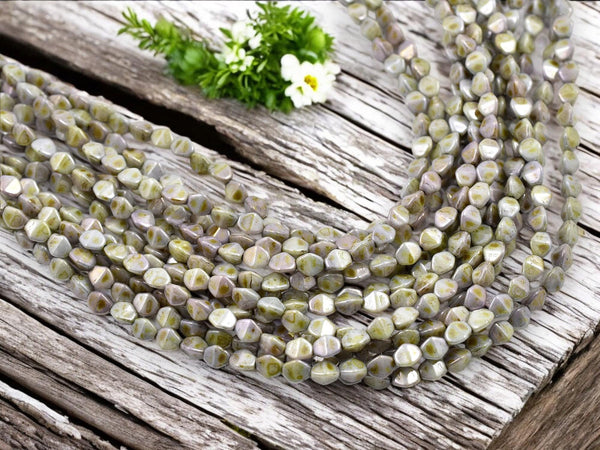 *50* 5x3mm Opaque Green Luster Picasso Pinch Beads