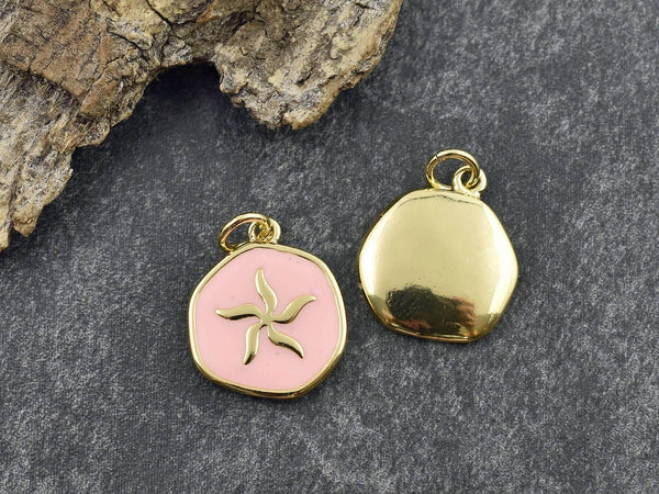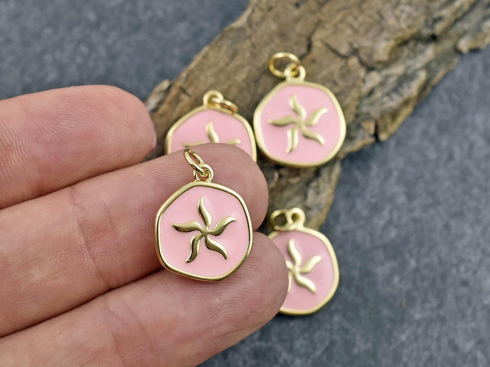 Color: Gold w/ coral pink enamel