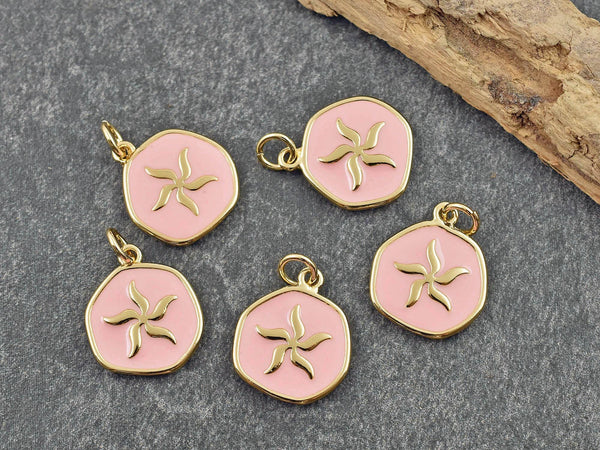 *5* 17x15mm 18k Gold Plated Brass w/Pink Enamel Starfish Charms