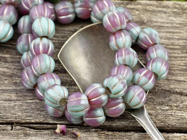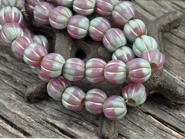 Platinum Washed Dusty Rose & Mint Green Large Hole Melon Beads -- Choose Your Size