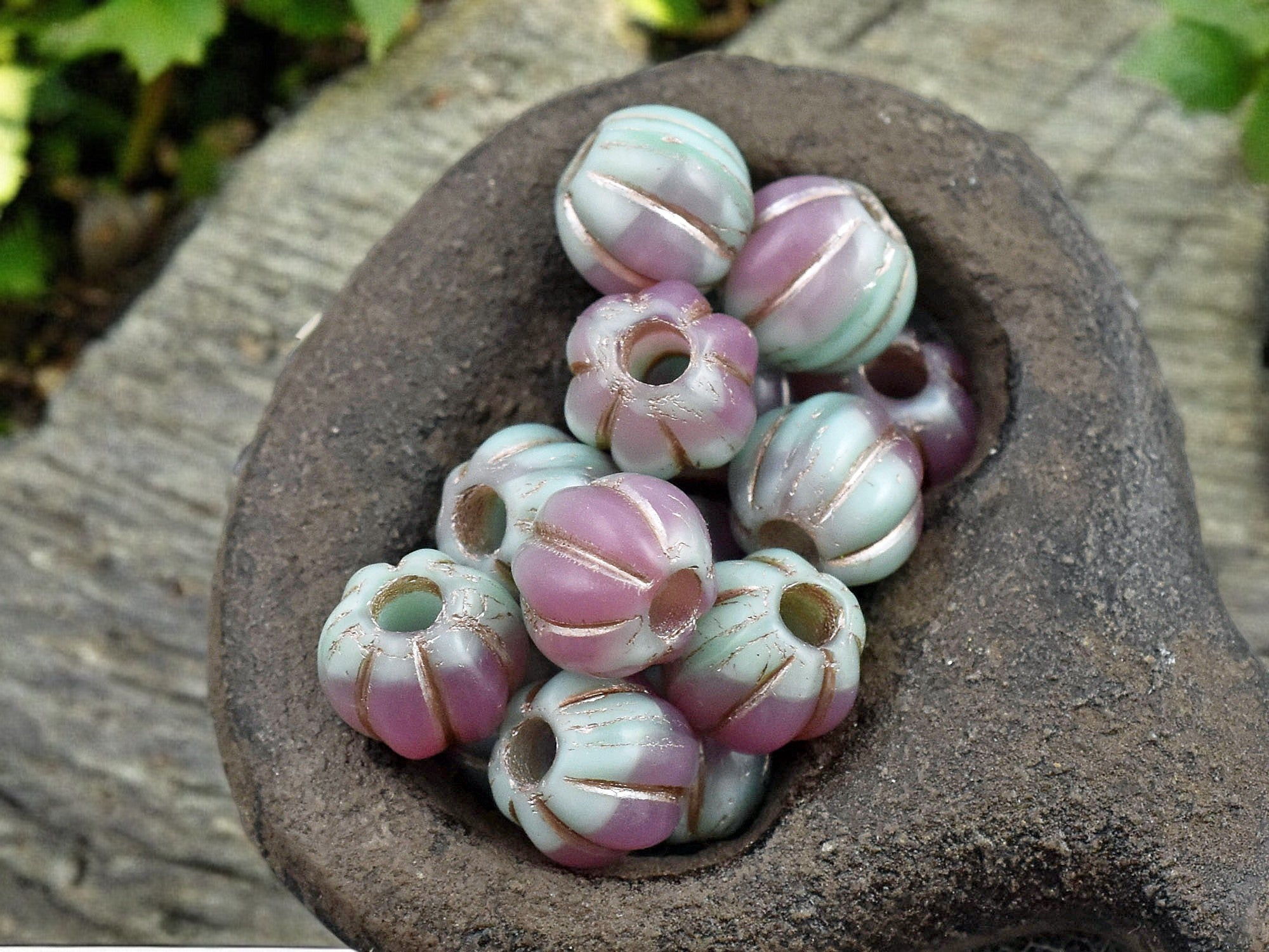 ♥ Type/Shape: Czech pressed glass LARGE hole melon beads
