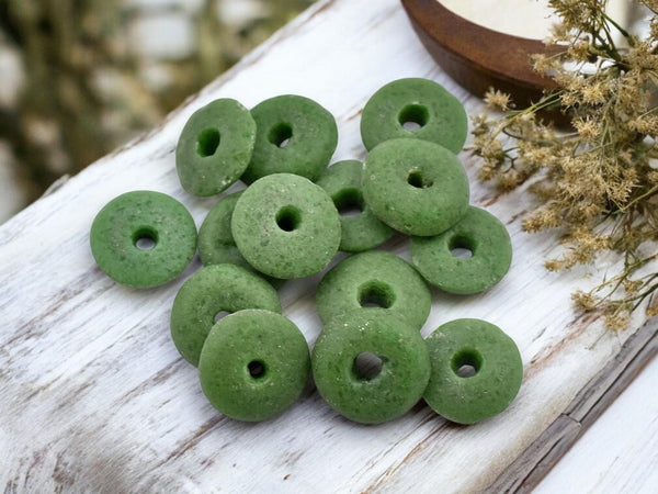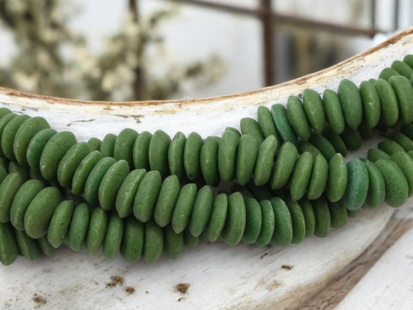 13~15mm Pine Green Recycled African Glass Heishi Beads