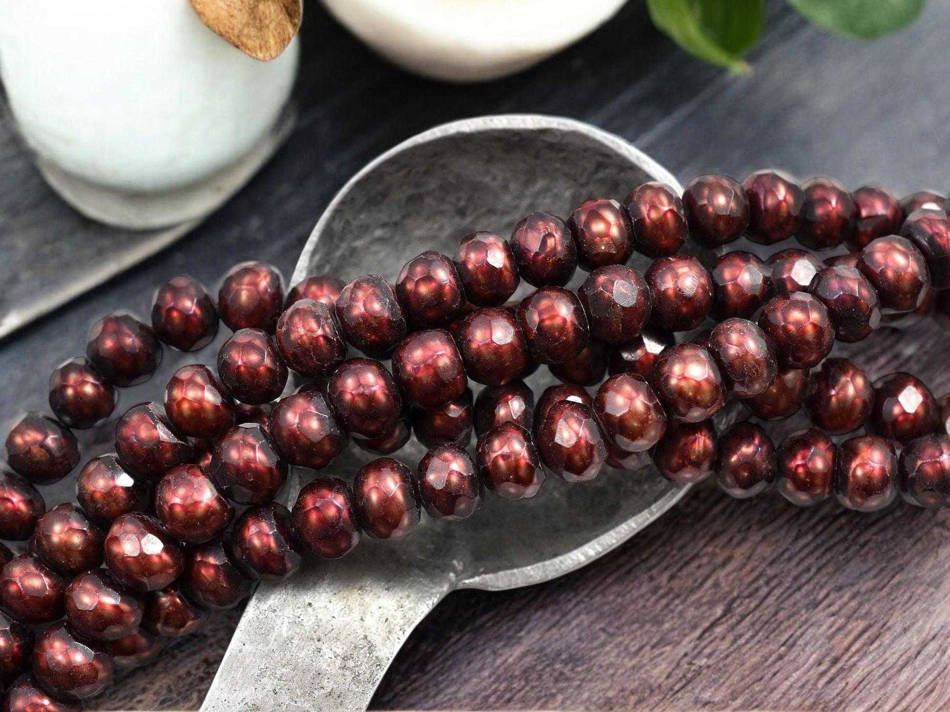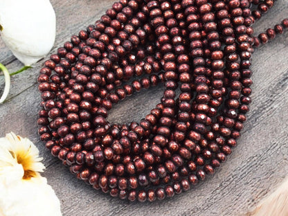 5x6mm Red Wine Freshwater Faceted Rondelle Pearl Beads (16" Strand)