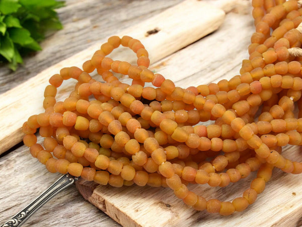 6-7mm Matte Tangarine African Recycled Glass Beads (19" Strand)