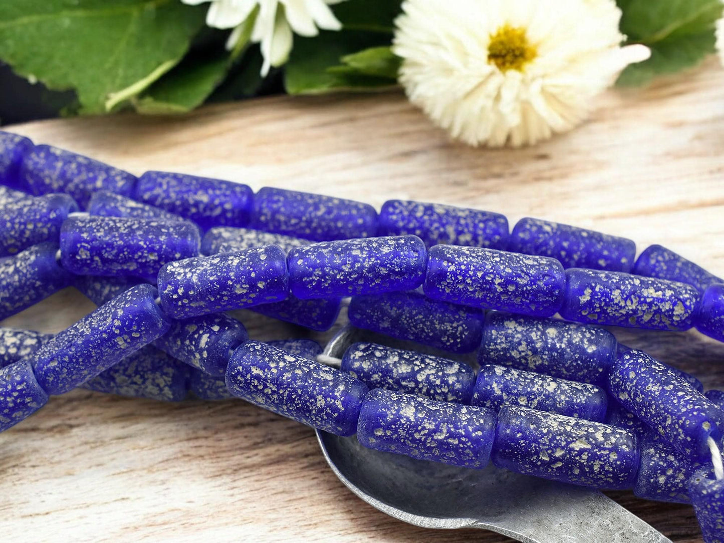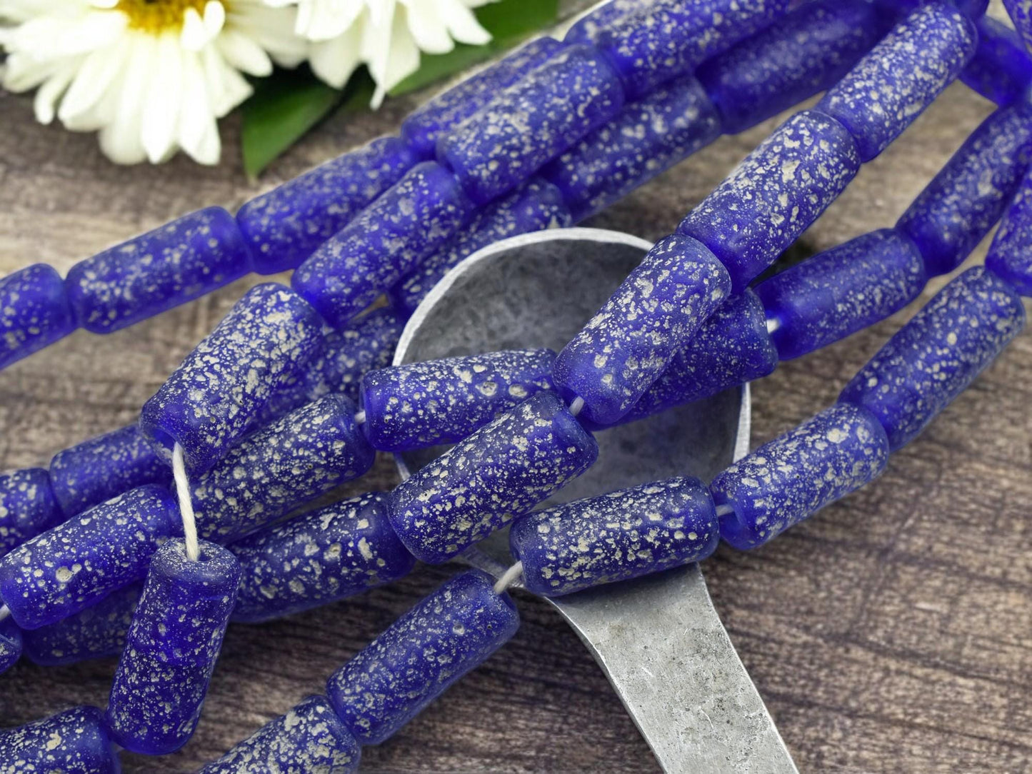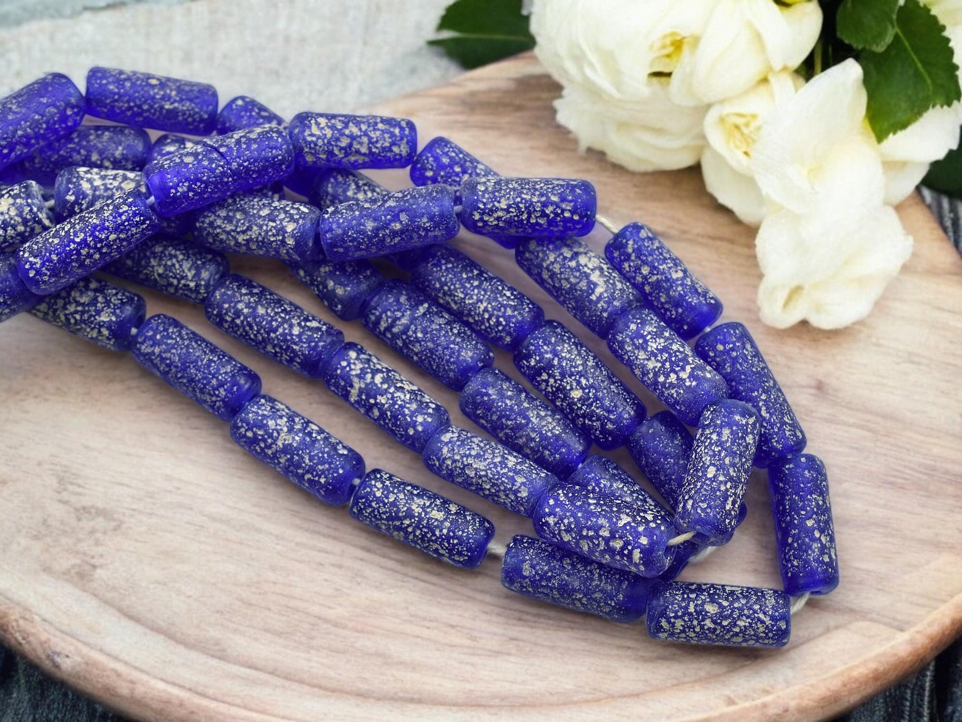 10x25mm Matte Cobalt Blue Pompeii Tube Beads (18" Strand) - Indonesian Glass Beads