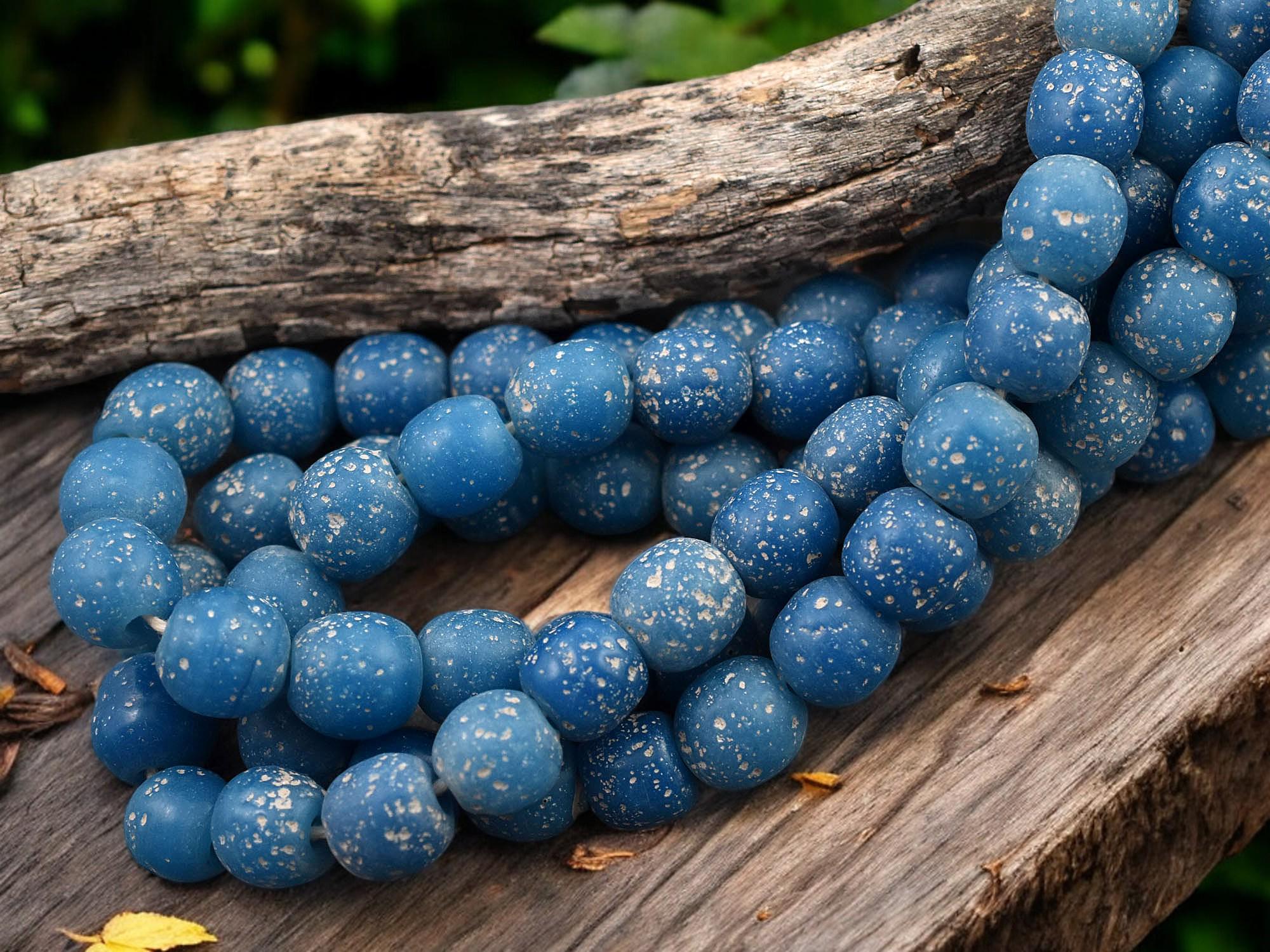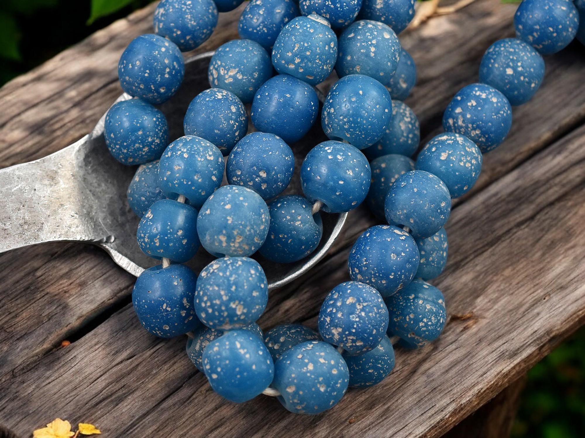 Pacific Blue Pompeii Round Beads (24" Strand) Indonesian Glass Beads