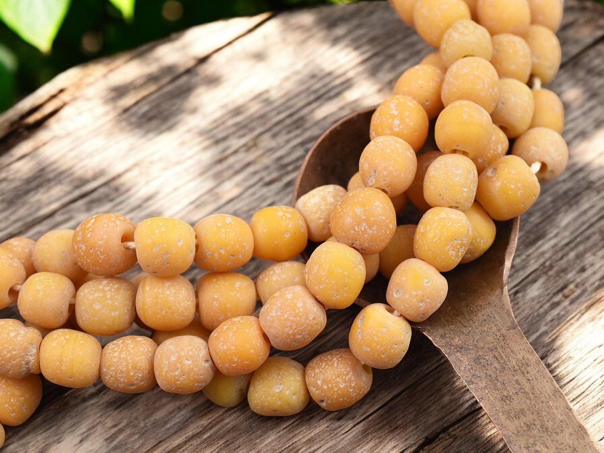 Goldenrod Pompeii Round Beads (24" Strand) Indonesian Glass Beads