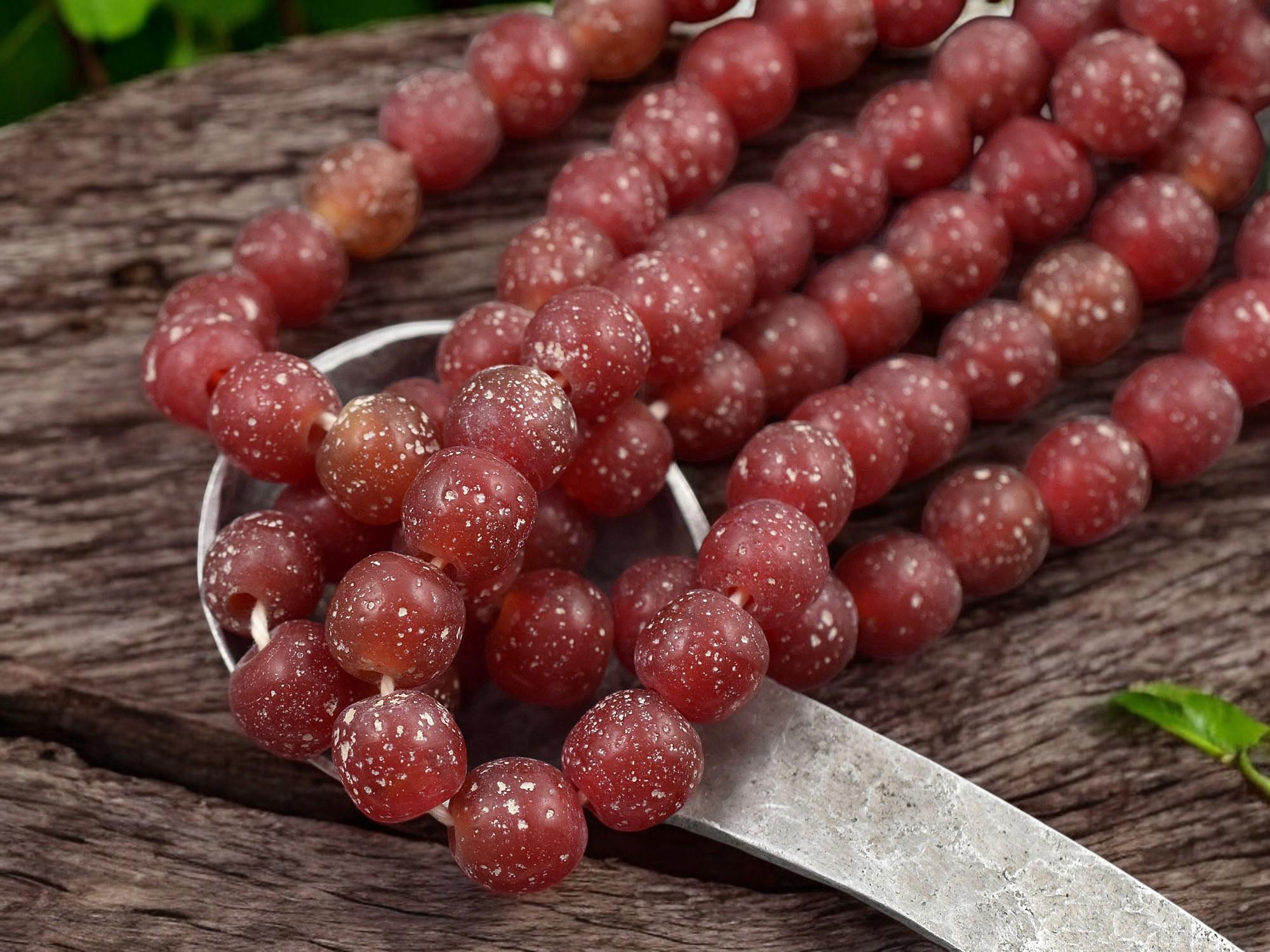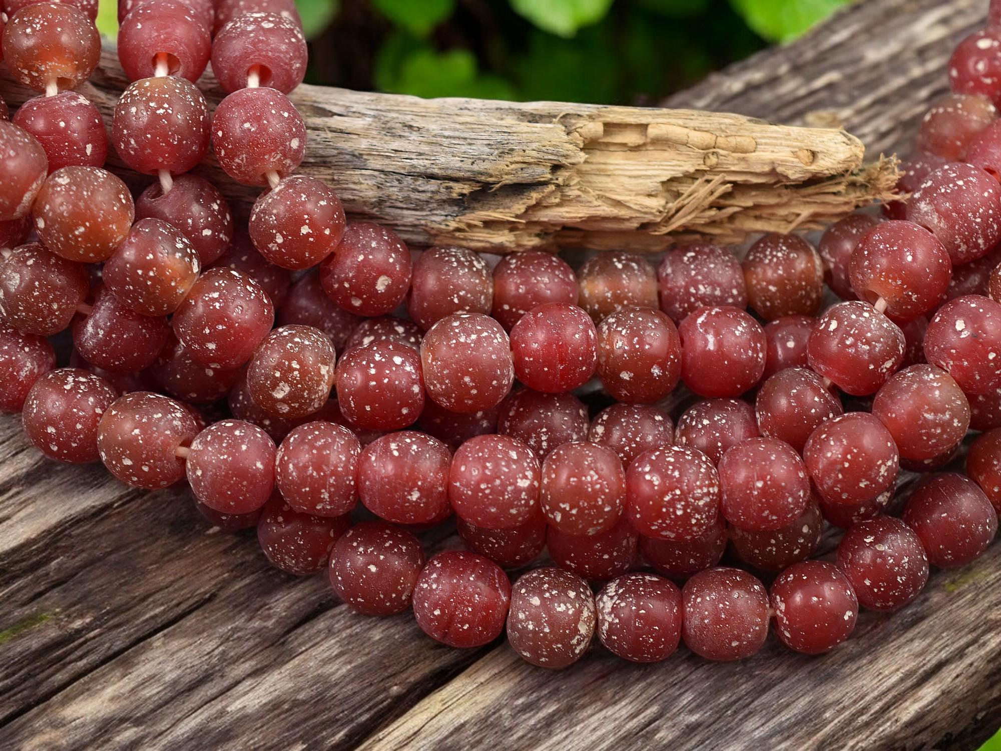 Ruby Red Pompeii Round Beads (24" Strand) Indonesian Glass Beads