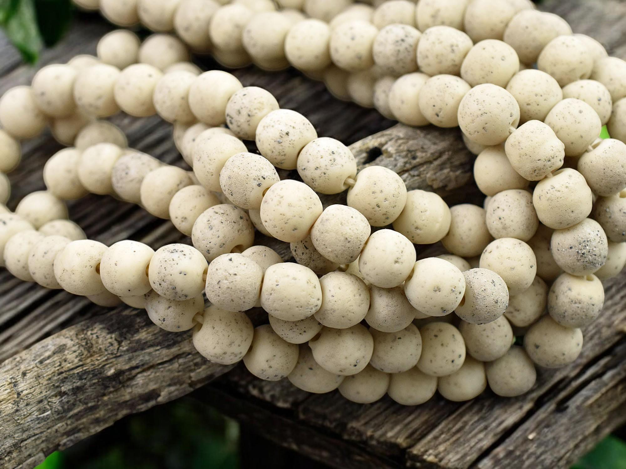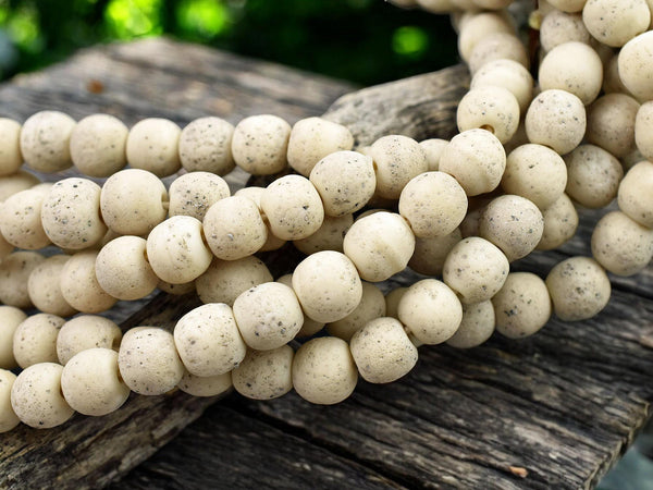 Sand Ivory Pompeii Round Beads (24" Strand) Indonesian Glass Beads