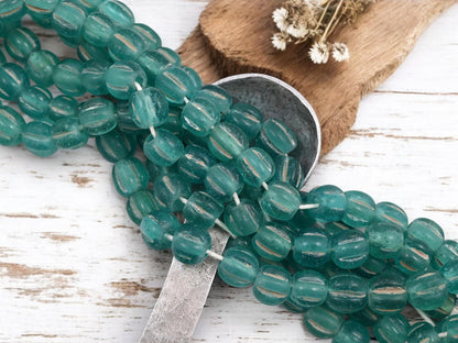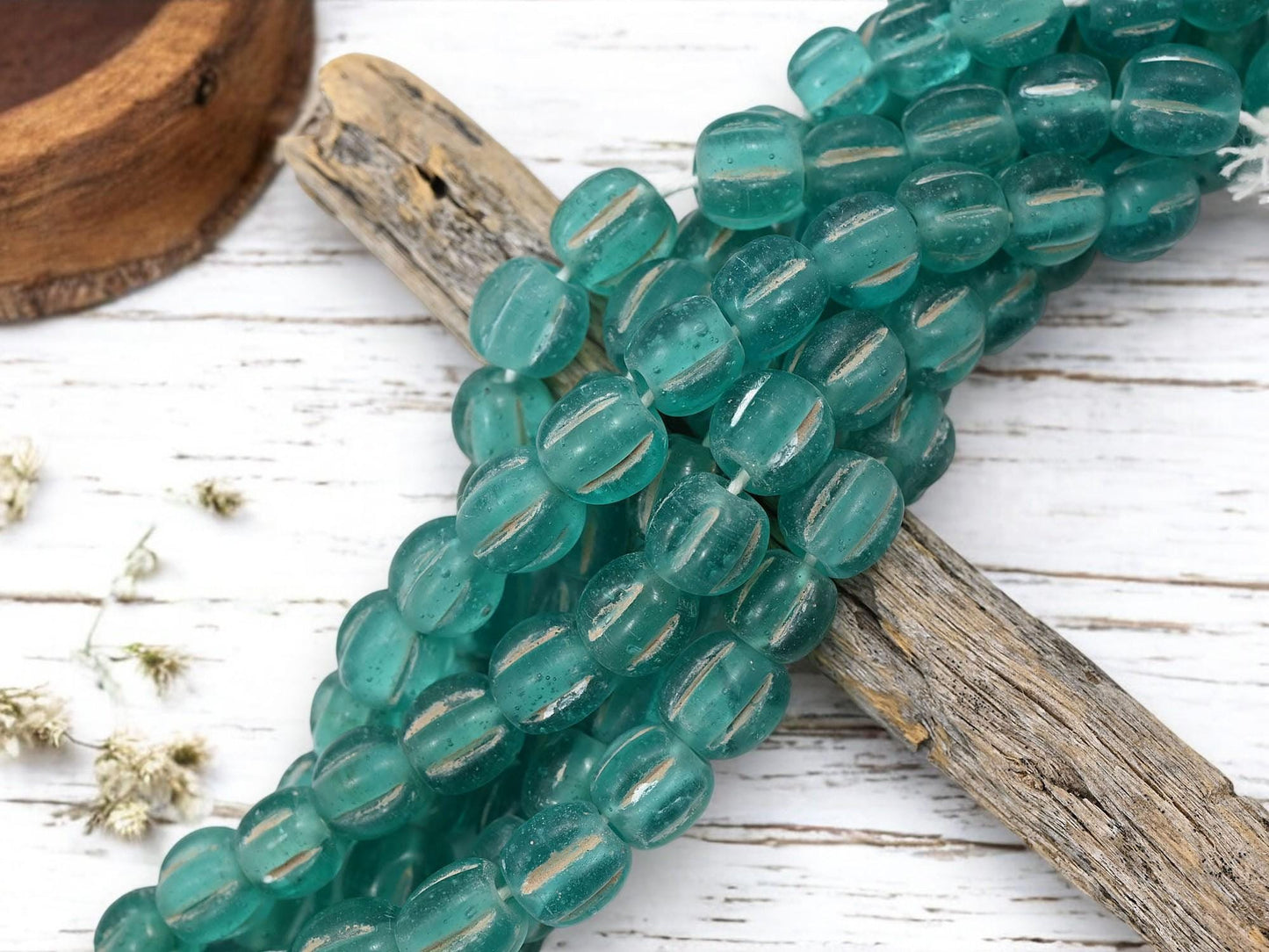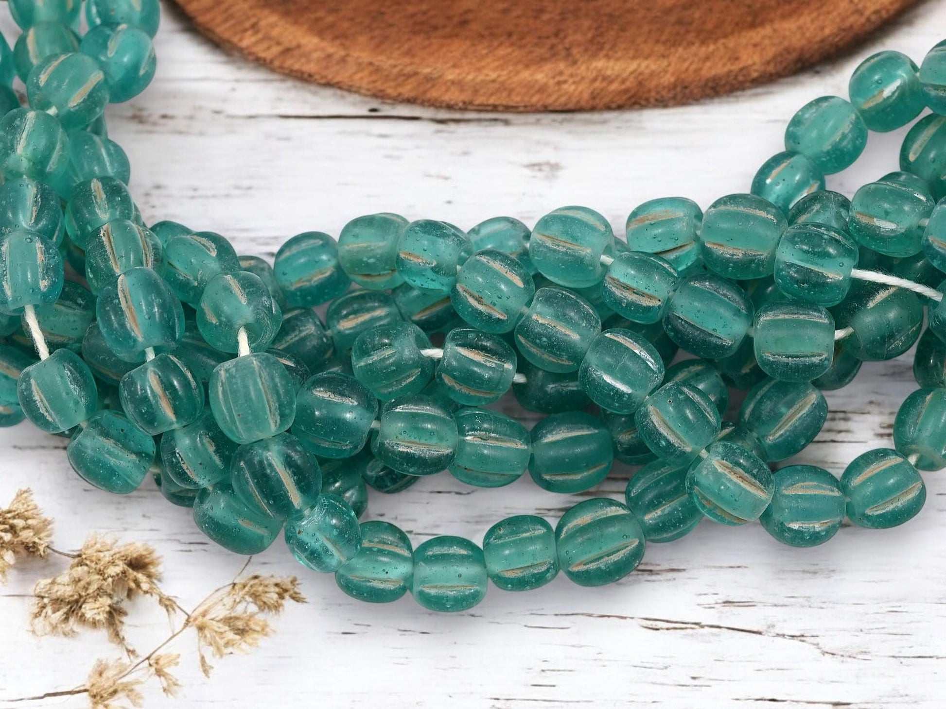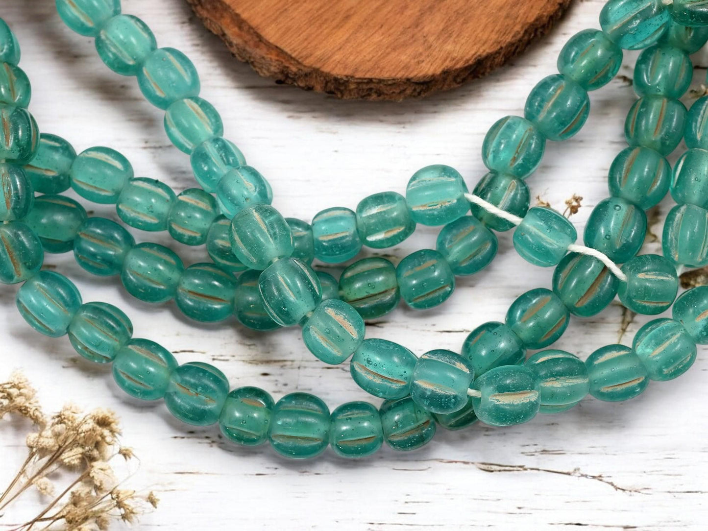 Aged Teal Pompeii "Melon" Round Beads (24" Strand) - Indonesian Glass Beads