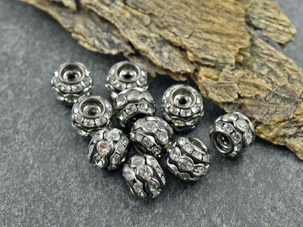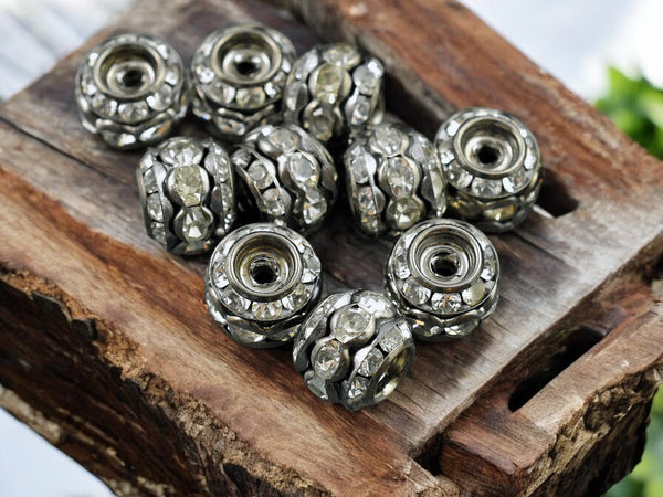 *10* 10mm Gunmetal Stacked Barrel Rhinestone Beads