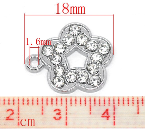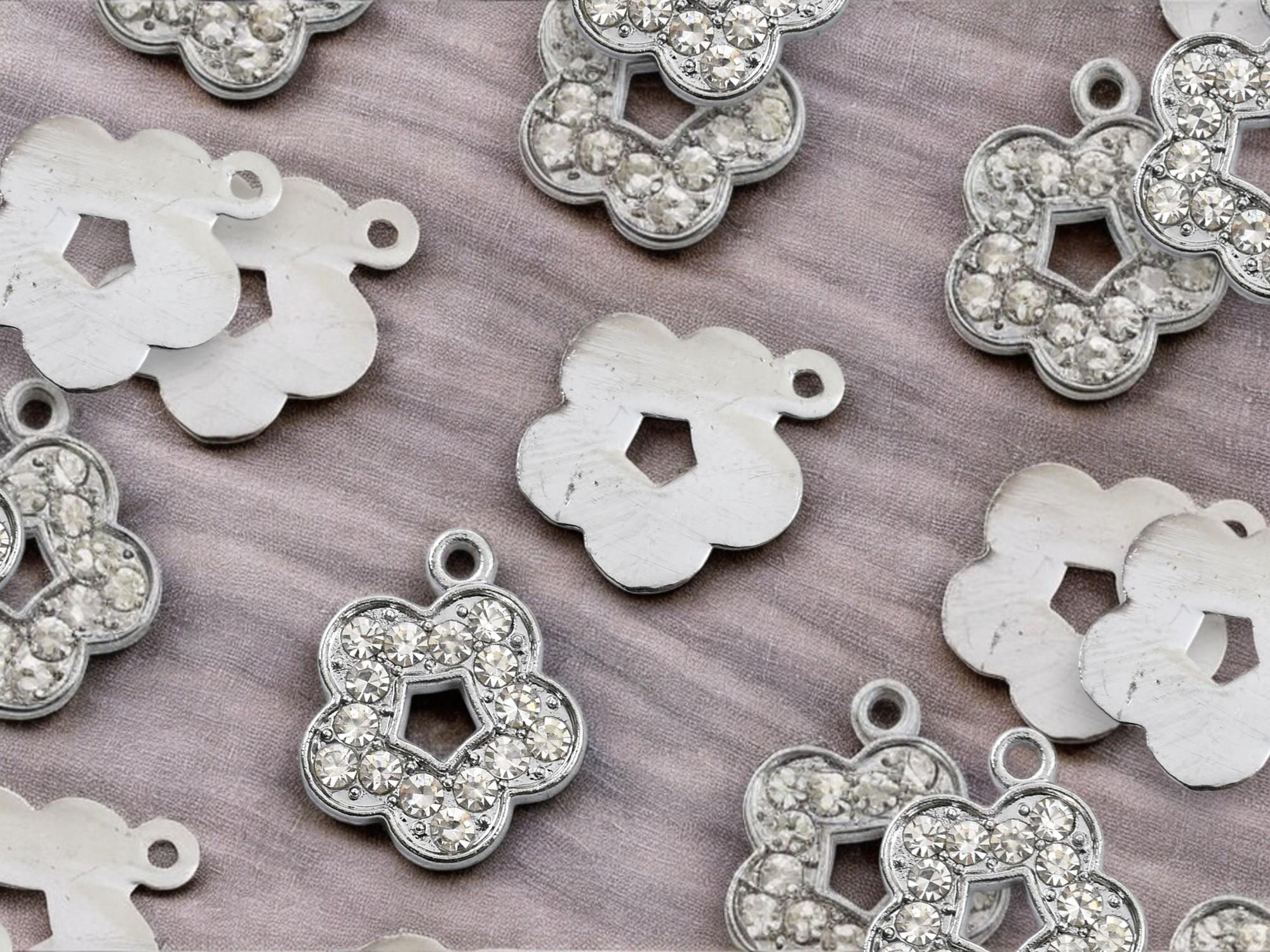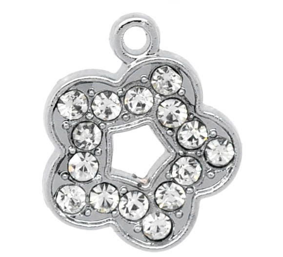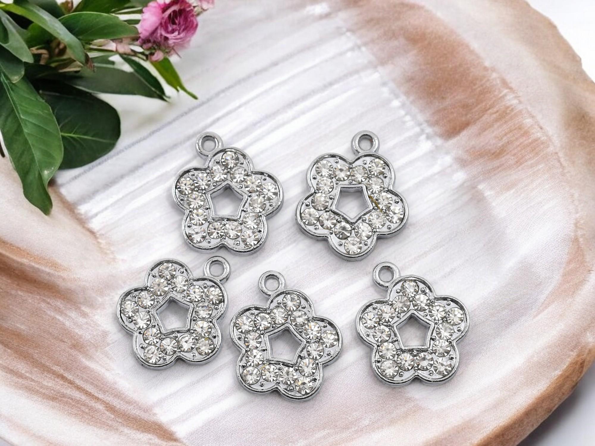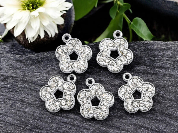 *5* 16mm Antique Silver Rhinestone Flower Charms