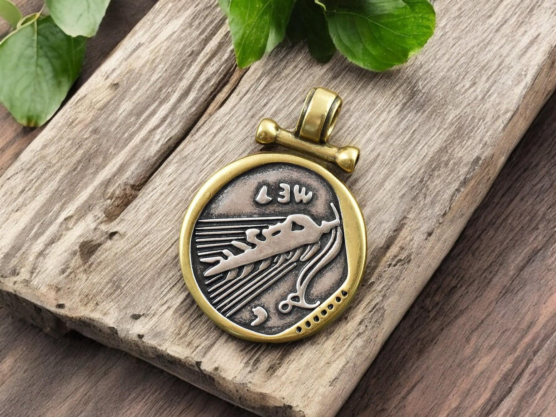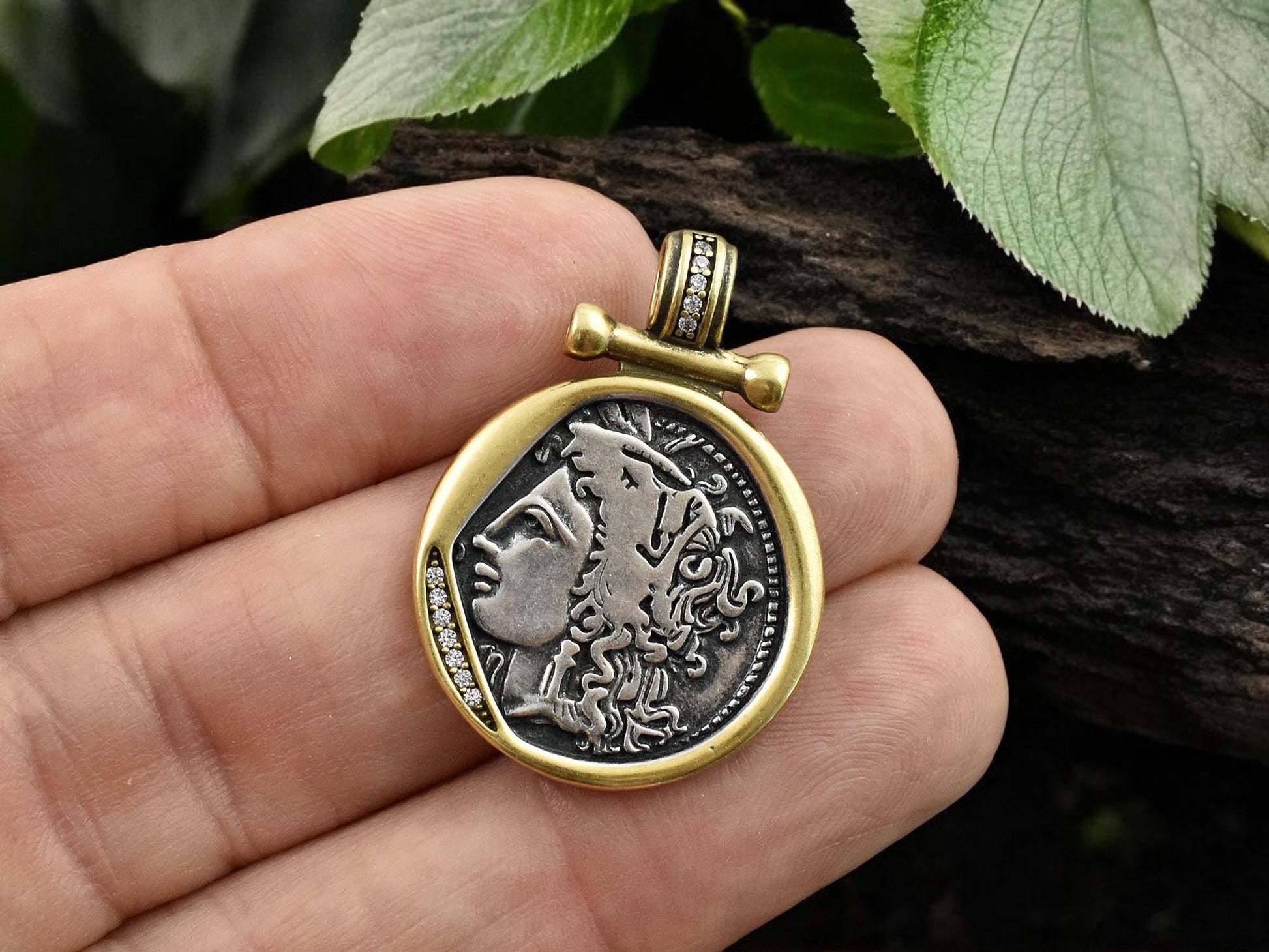 31x22mm 18k Gold Plated Brass Micro Pave Cubic Zirconia Greek Coin Pendant
