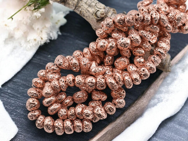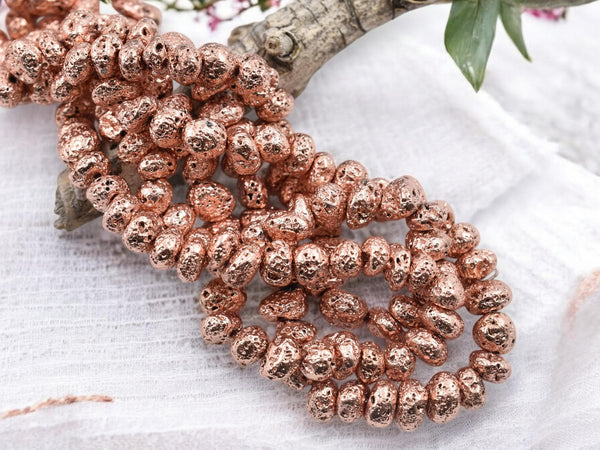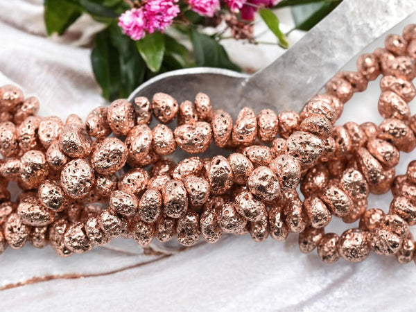 7-10mm Rose Gold Electroplated Natural Lava Rock Nugget Beads (14-15" Strand)