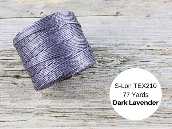 S-Lon (Superlon) is an extra-heavy, twisted nylon, multi-filament cord. It is great for bead knotting, bead crochet, leather wrap bracelets and micro-macrame jewelry. This bead cord will fit through a size 12 beading needle. Approx. 0.5mm, #18